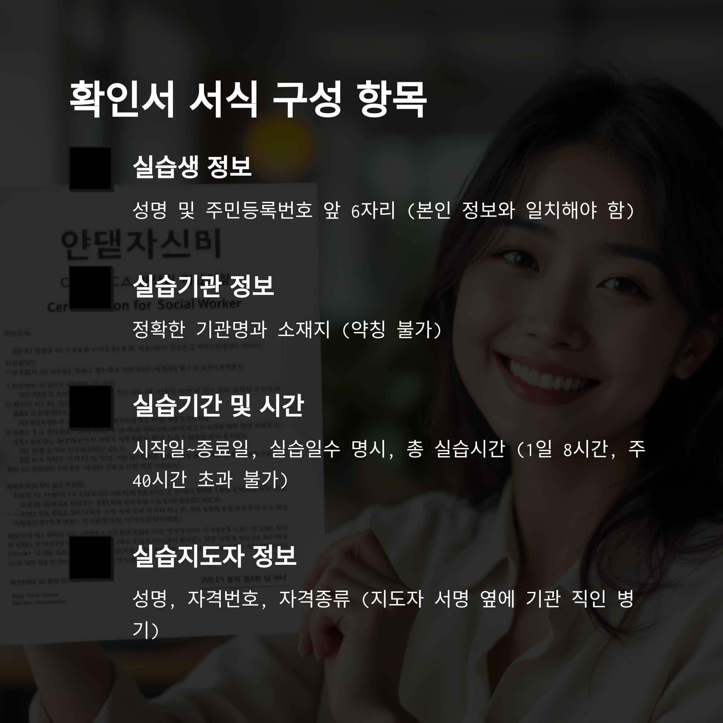 개정된 사회복지현장실습확인서 서식 구성 (2025년판)