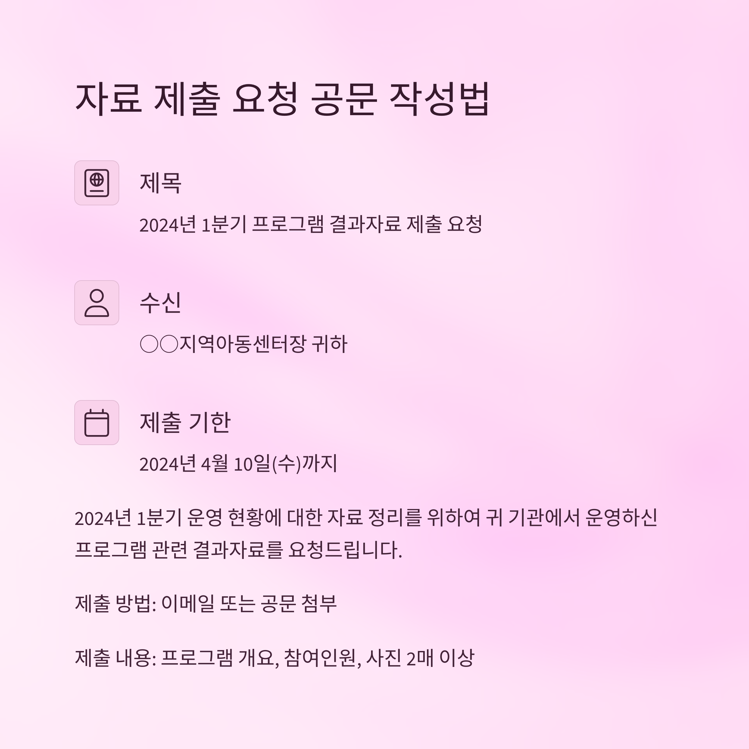 | 공문서 예시: 지역아동센터 실무에서 자주 쓰는 공문 양식 (2) | 2025.05.22 |