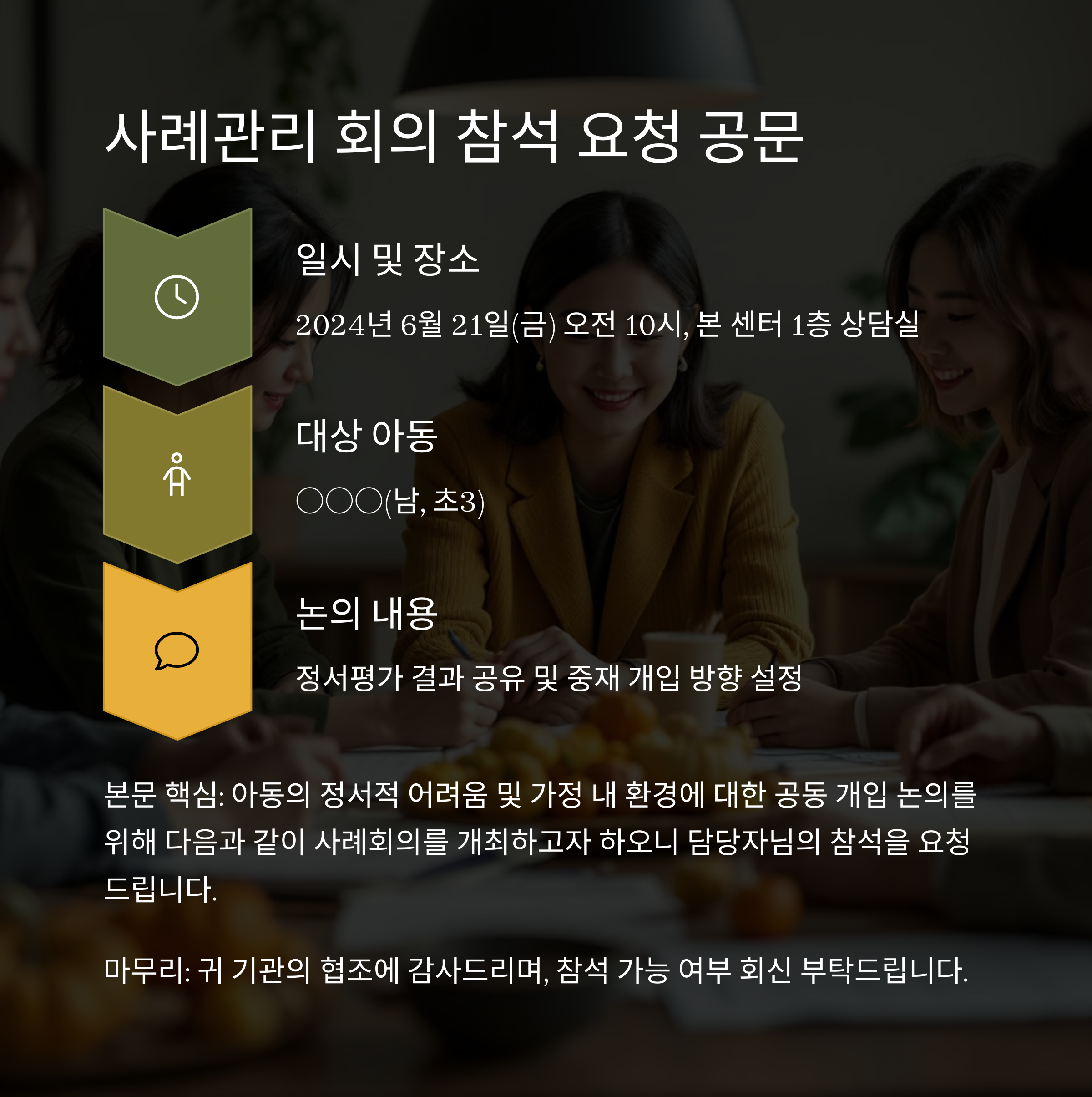 아동 사례관리 관련 회의 참석 요청