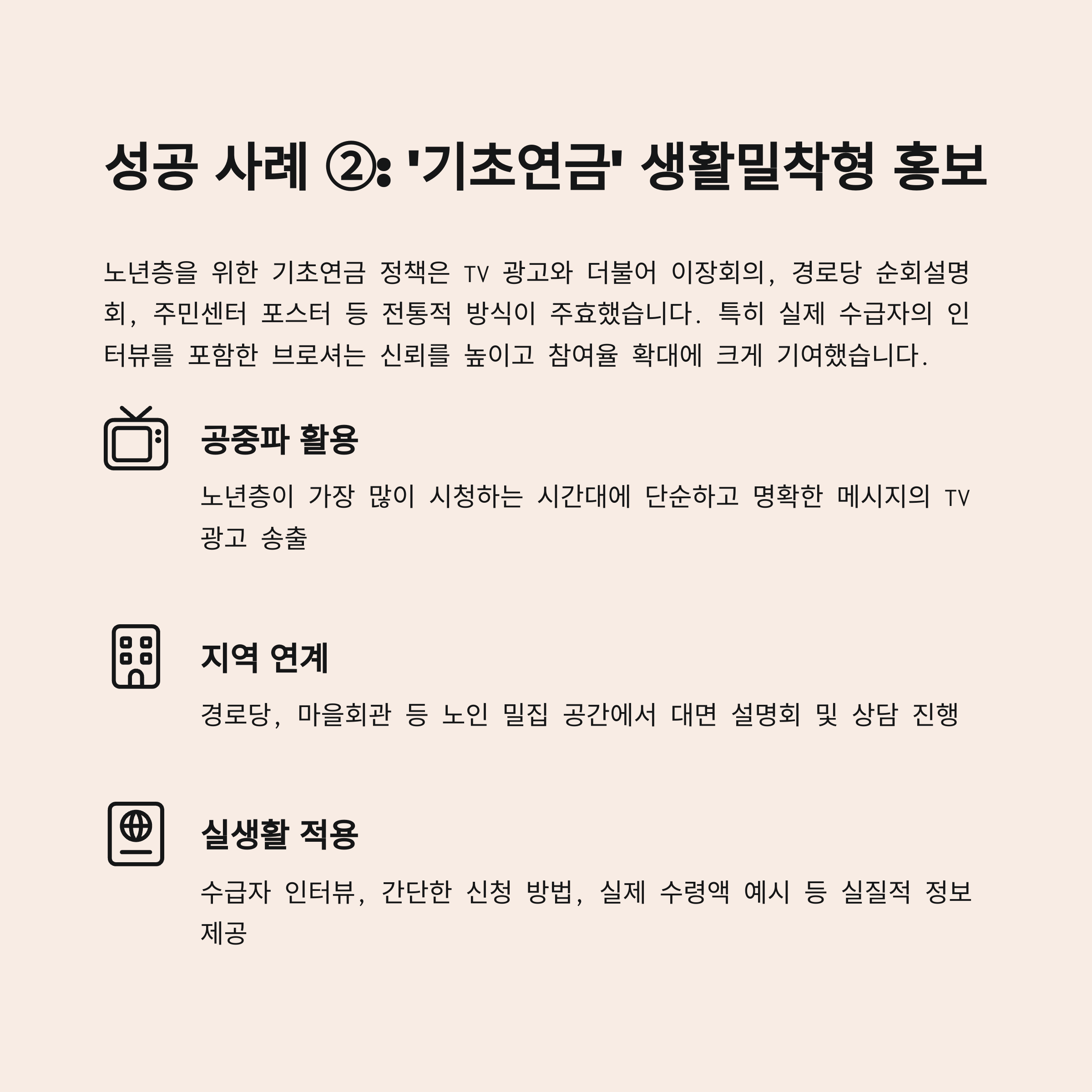 대표 성공 사례 ②: ‘기초연금’ 생활밀착형 오프라인 홍보