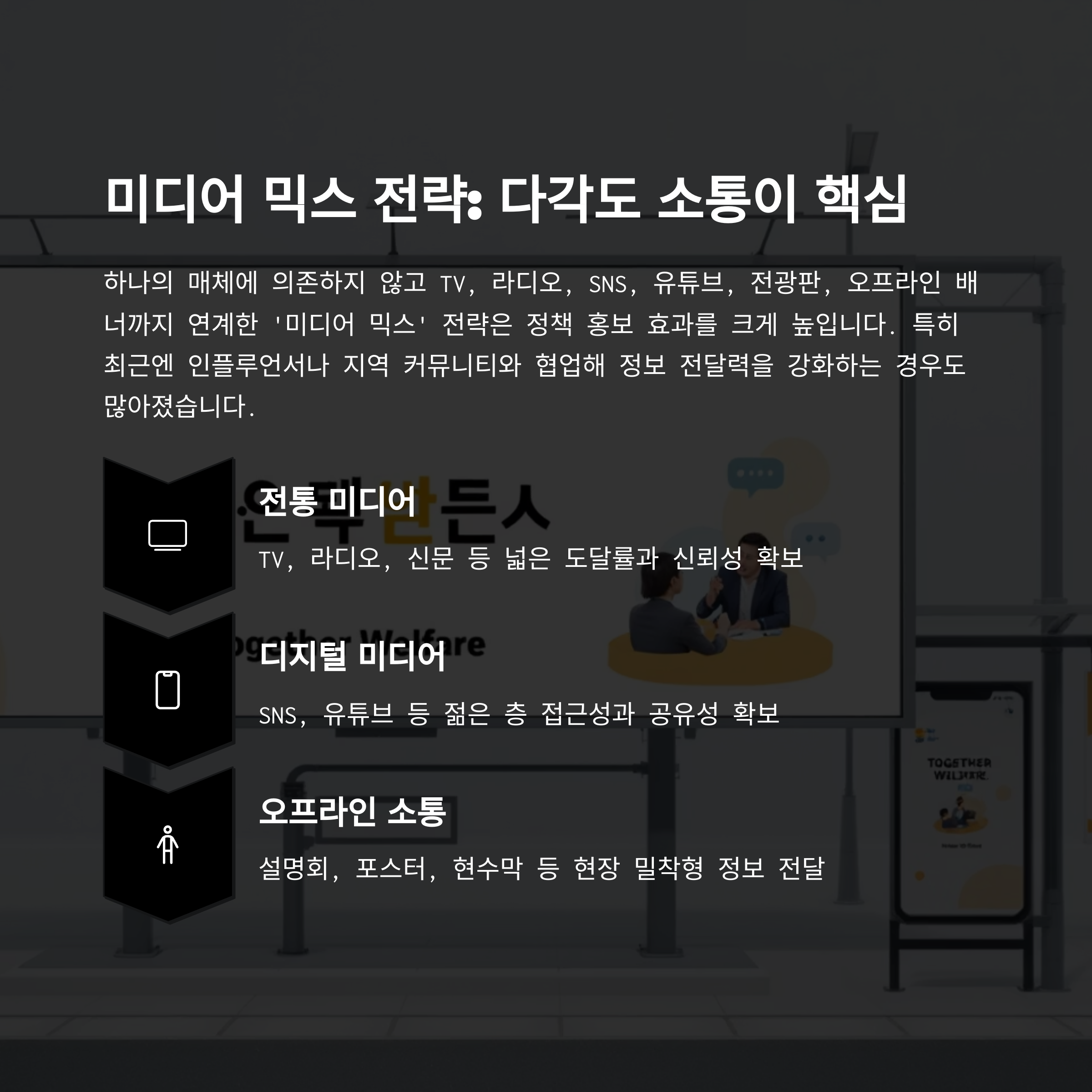 ‘미디어 믹스’ 전략은 정책 홍보 효과를 크게 높입니다.