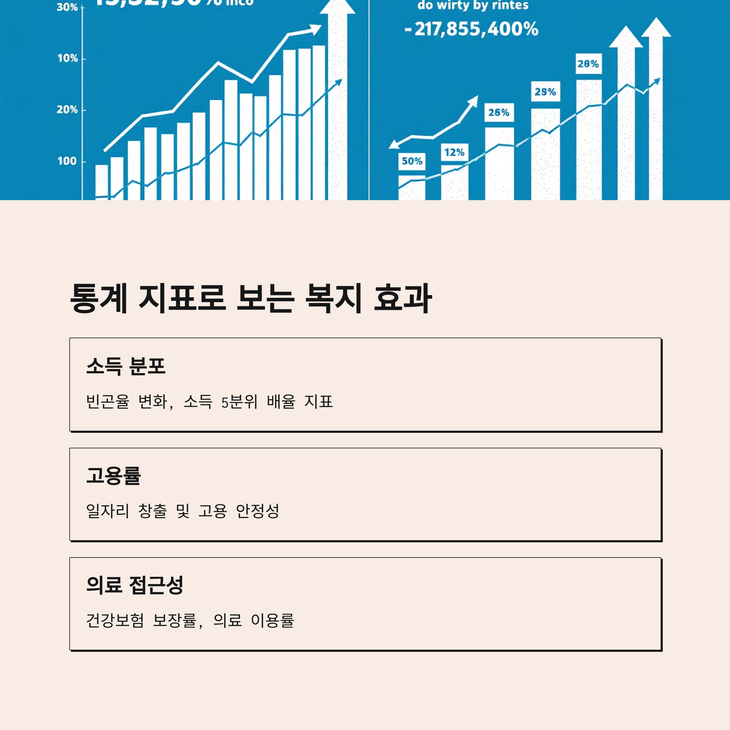또한, 의료복지 확대의 경우에는 국민건강보험 보장률 상승이나 의료 이용률 변화를 통해 파악됩니다.