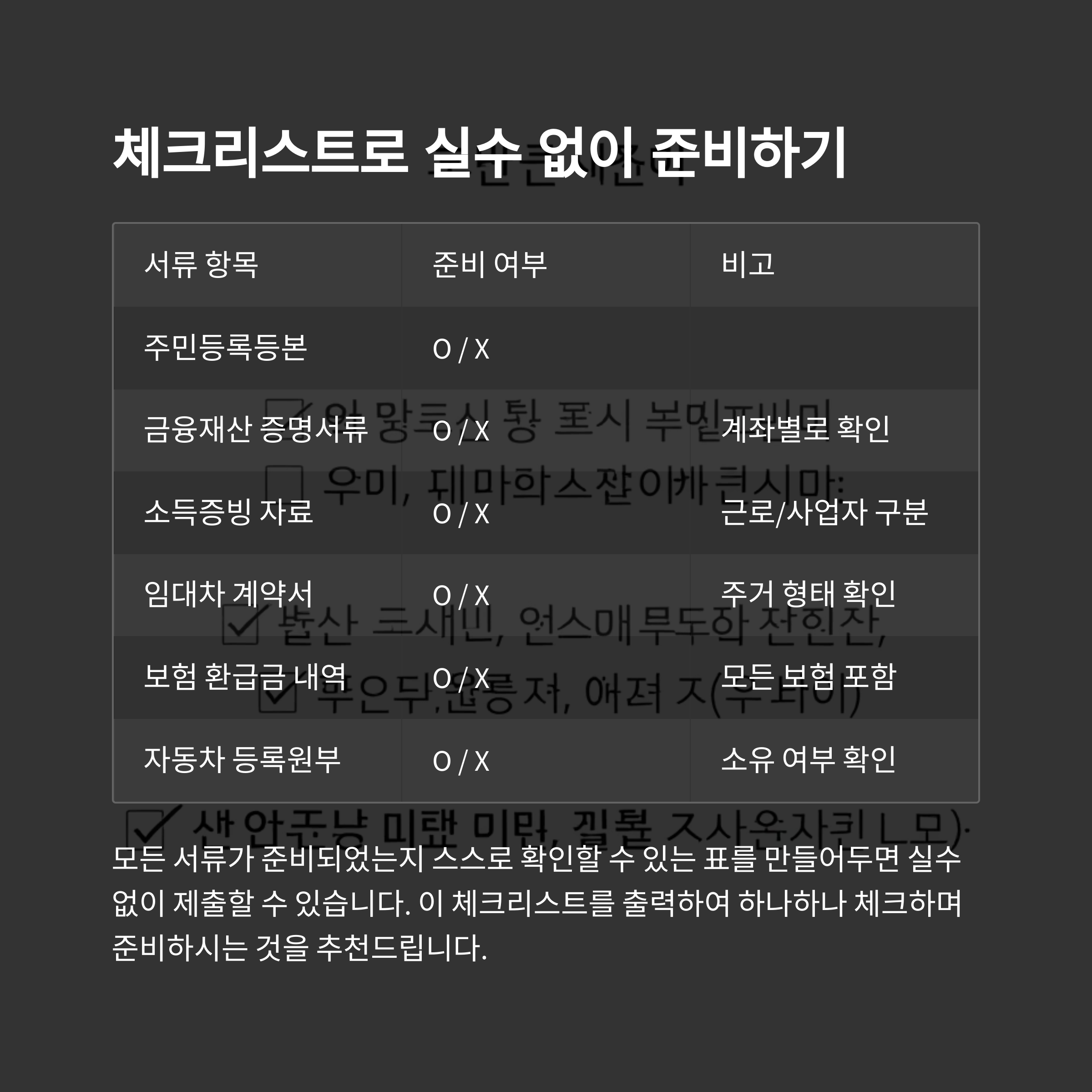 자신의 상황에 맞는 맞춤형 서류 목록을 꼭 확인받으세요.