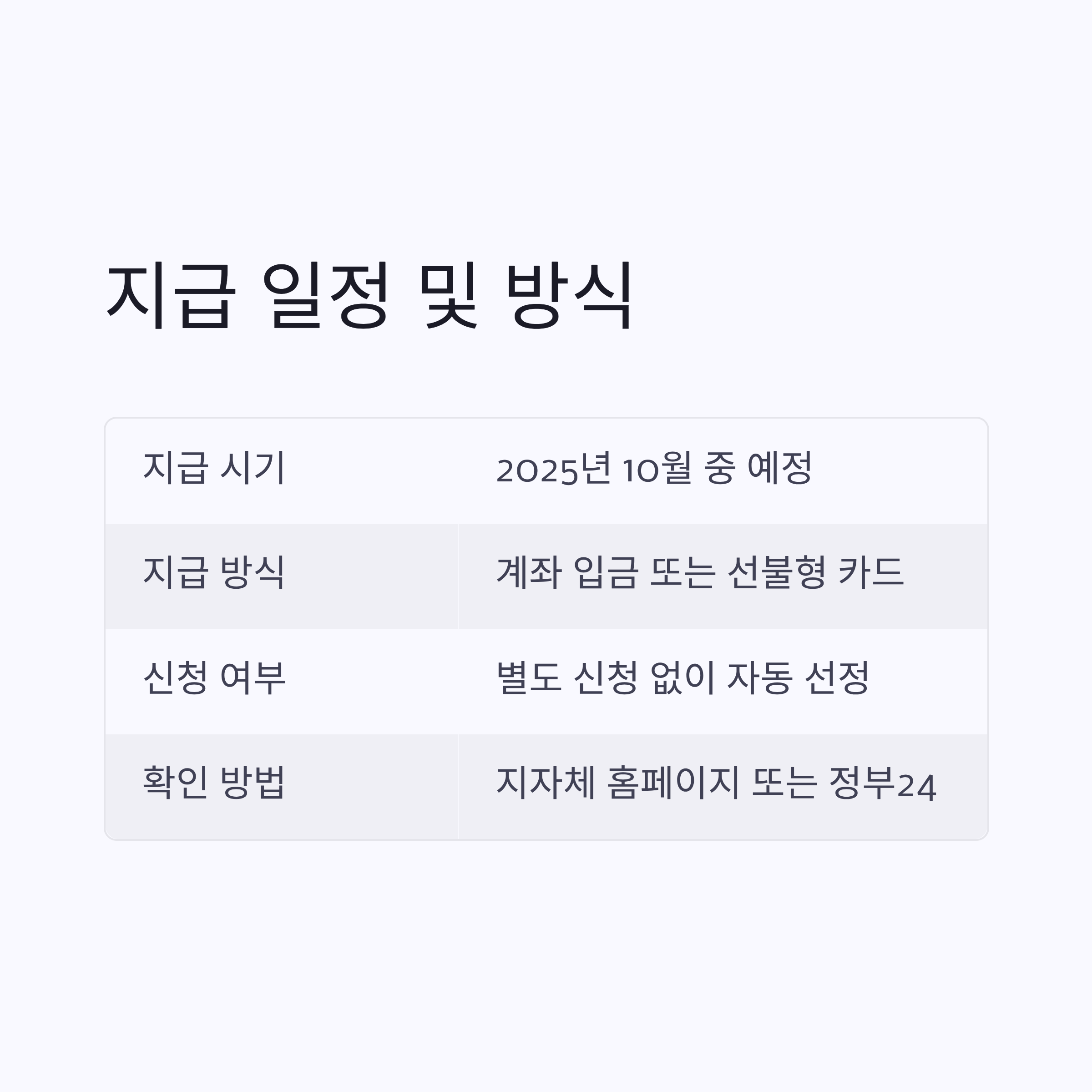 지급 방식은 지역별로 상이하므로 본인 거주지 지자체 홈페이지 확인이 필수예요.