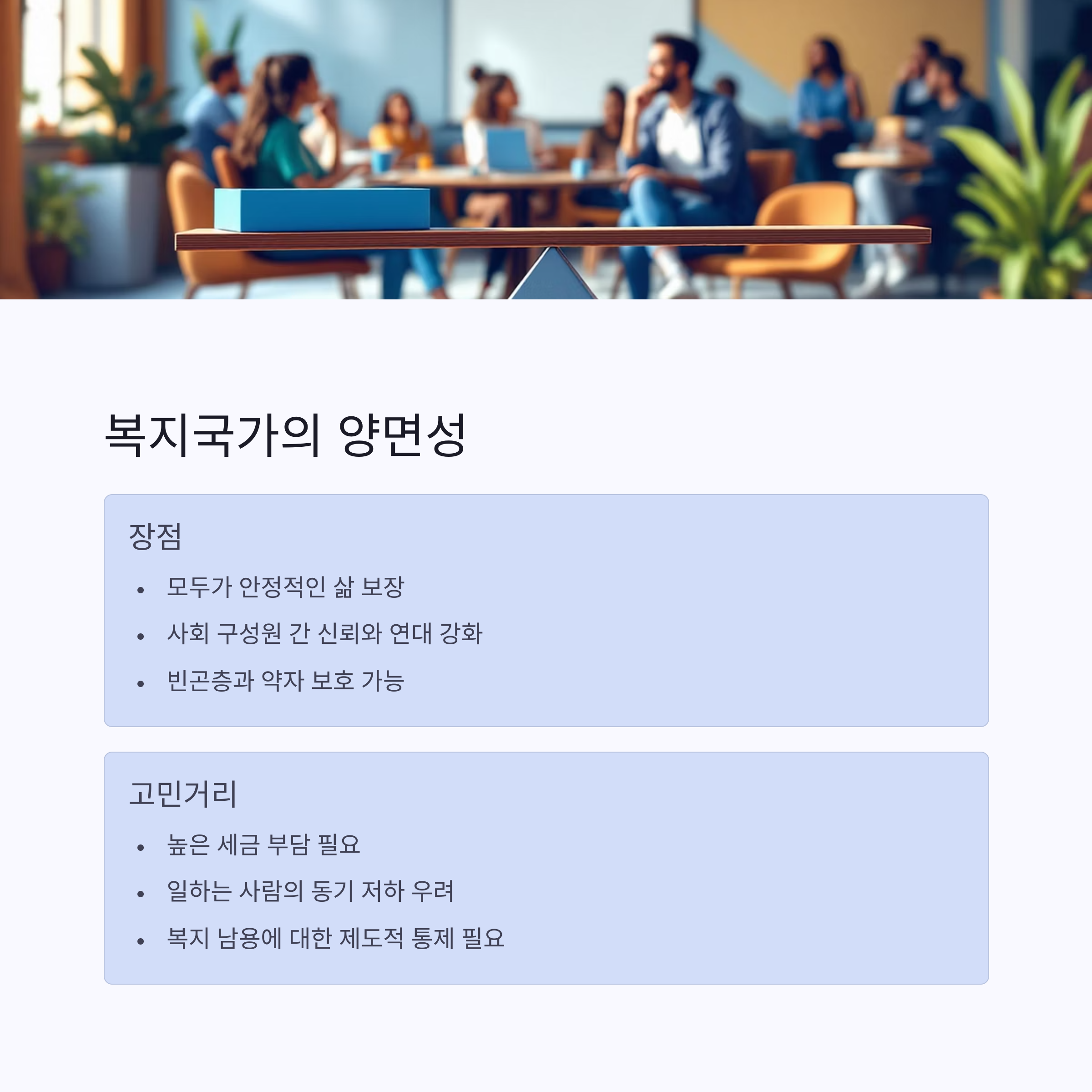 | 빈곤층과 약자 보호 가능 | 복지 남용에 대한 제도적 통제 필요 |