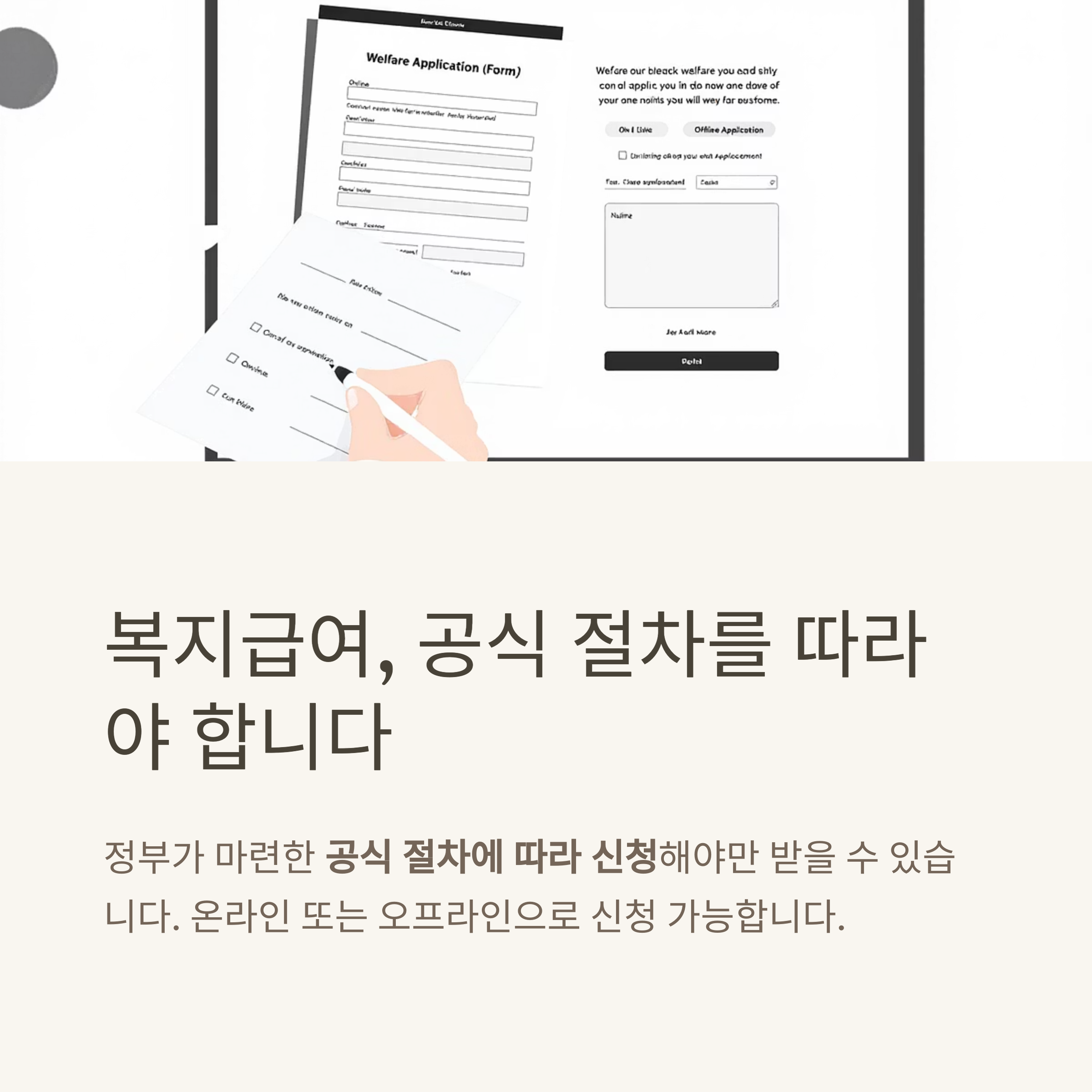 복지급여는 정부가 마련한 공식 절차에 따라 신청해야만 받을 수 있습니다