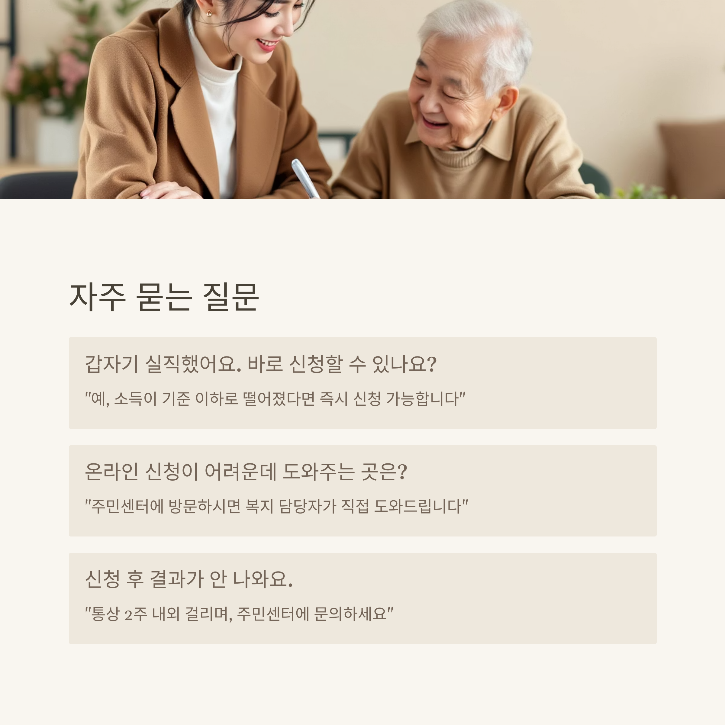 "주민센터에 방문하시면 복지 담당자가 직접 도와드립니다"
