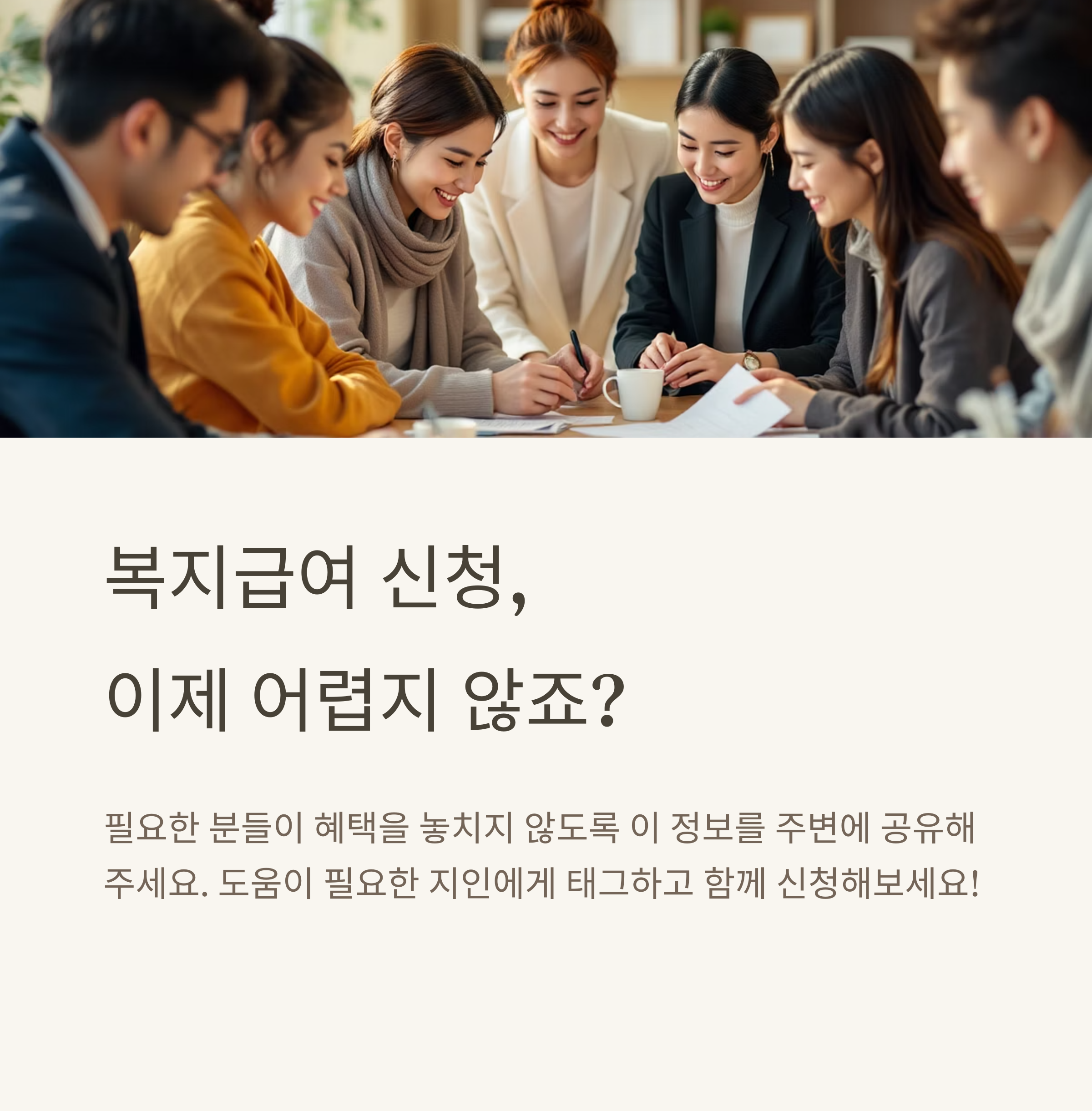 중요 요약: 복지 신청은 자격 확인 → 신청 → 심사 → 결과 통보 → 수급 시작의 순서입니다