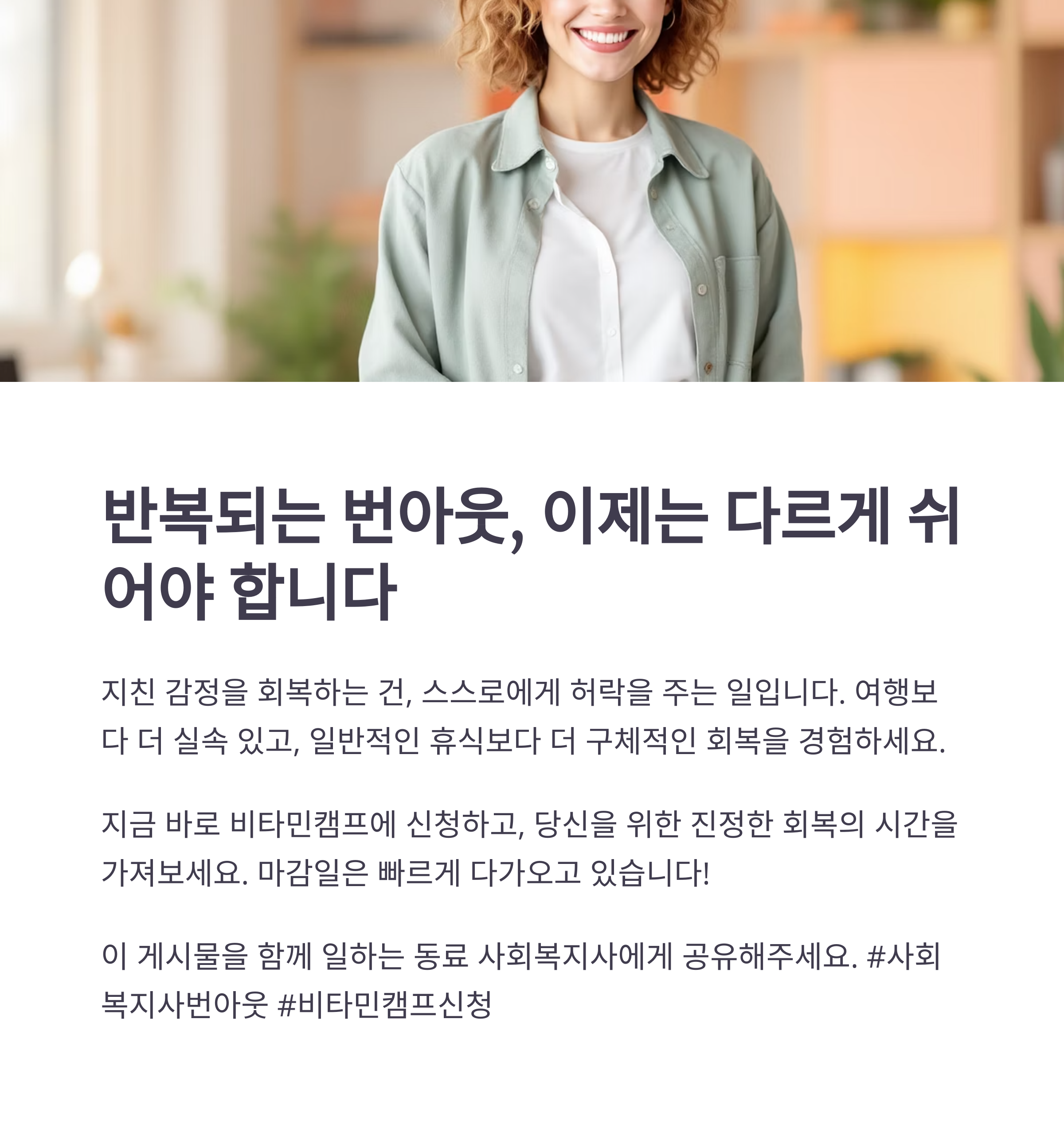 지금 신청해서, 나를 위한 진짜 쉼을 실천하세요.