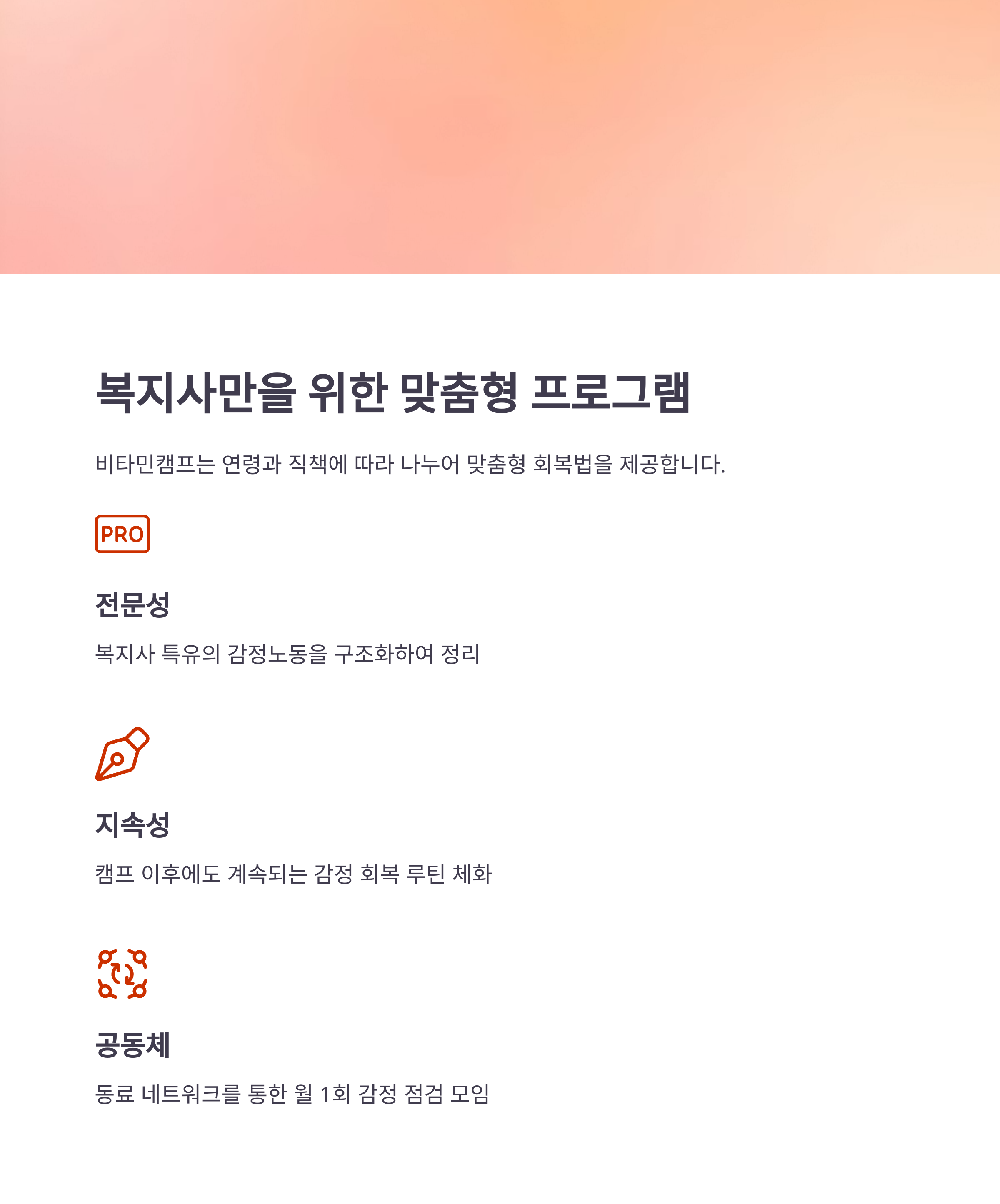 복지사 특유의 감정노동을 구조화해 정리해줍니다.