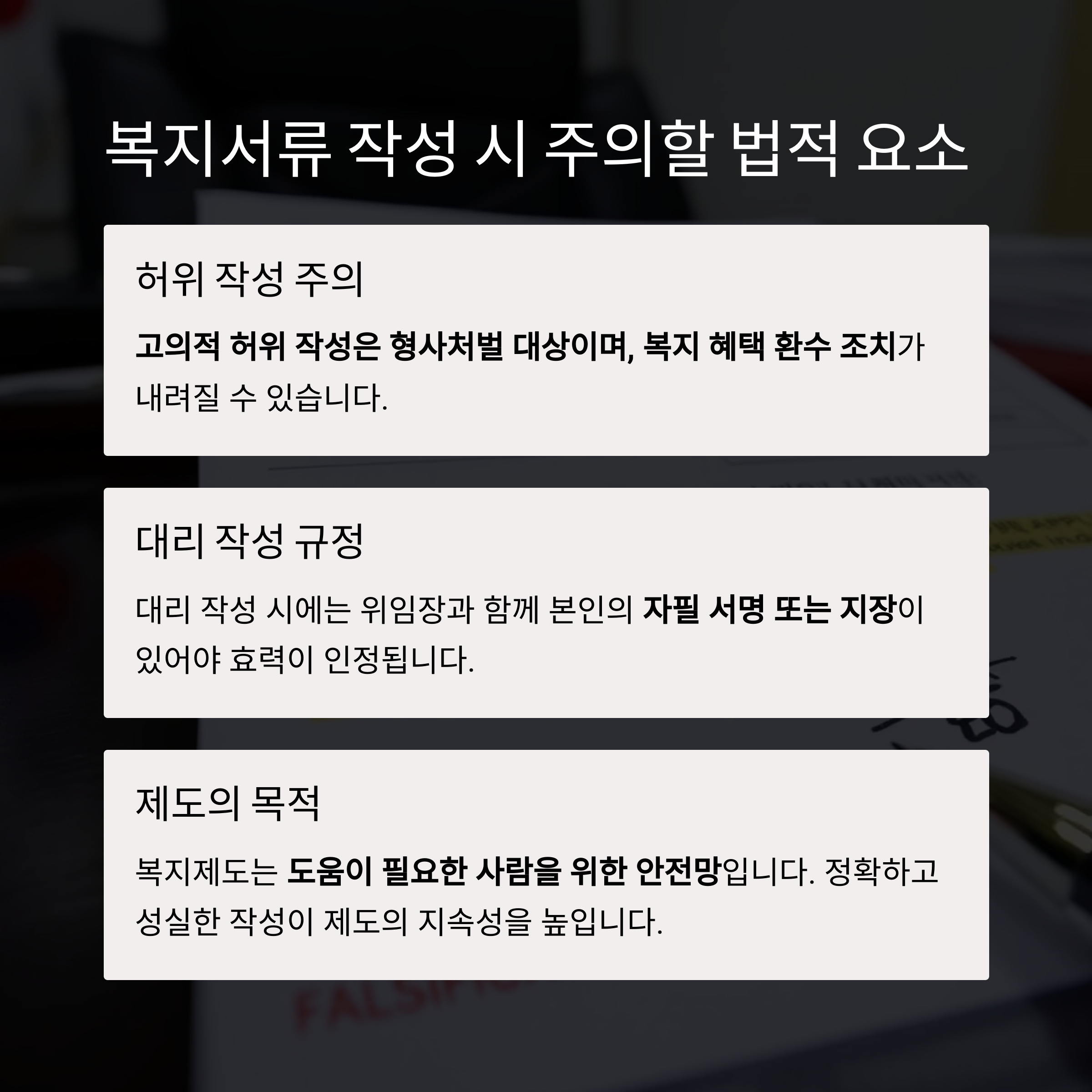 복지서류 작성 시 주의해야 할 법적 요소
