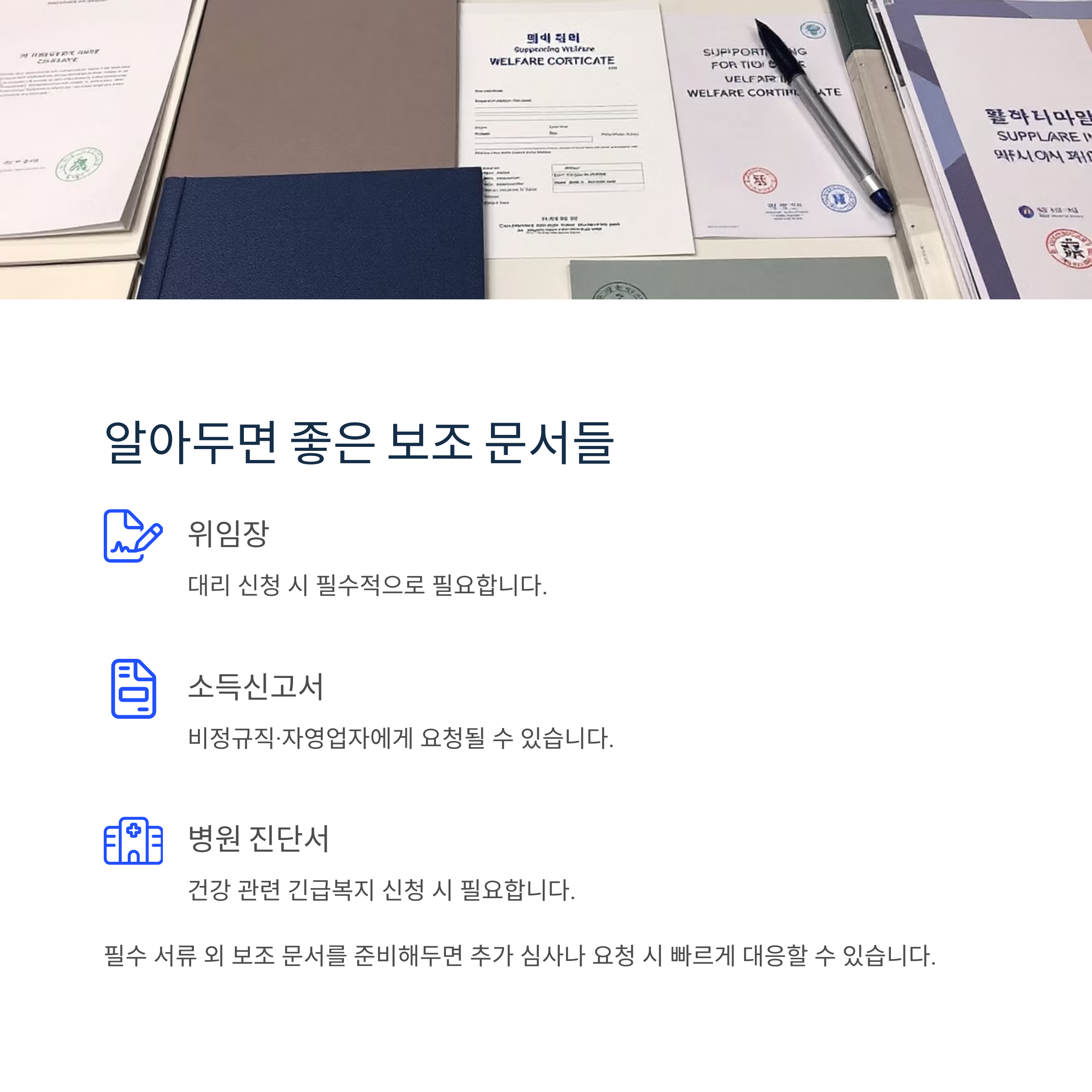 복지서류는 준비된 자에게 더 빠른 혜택을 줍니다.