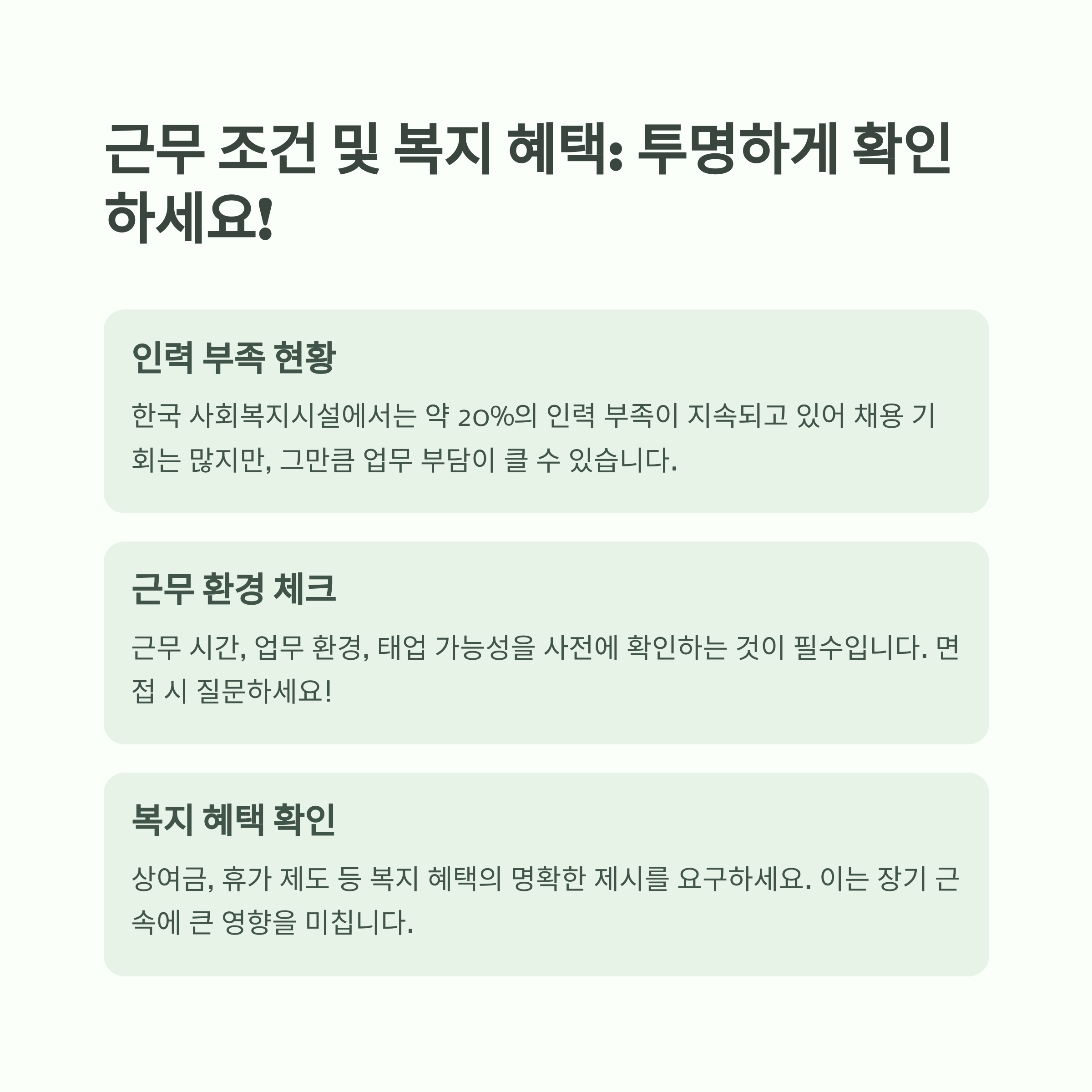 탄탄한 자격 요건 충족 외에도, 근무 조건과 시설 환경을 꼼꼼히 비교해야 합니다.