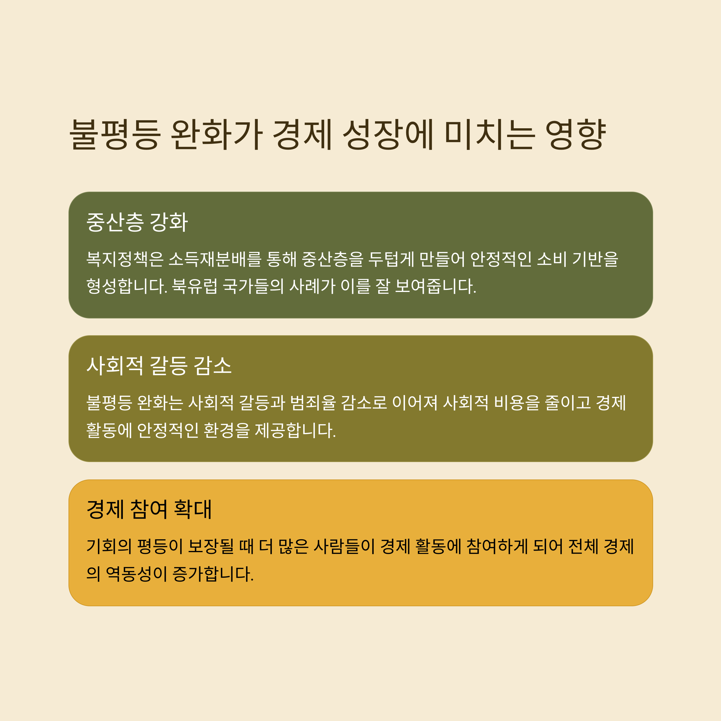 복지정책은 소득 재분배를 통해 사회적 갈등을 줄이고, 중산층을 두텁게 만드는 역할을 합니다. 이는 사회적 안정성과 소비 기반을 동시에 확장하는 효과를 낳으며, 경제 전반의 수요 구조를 안정시켜 줍니다. 특히 복지가 강한 북유럽 국가들의 사례는 이러한 구조적 장점을 잘 보여줍니다.