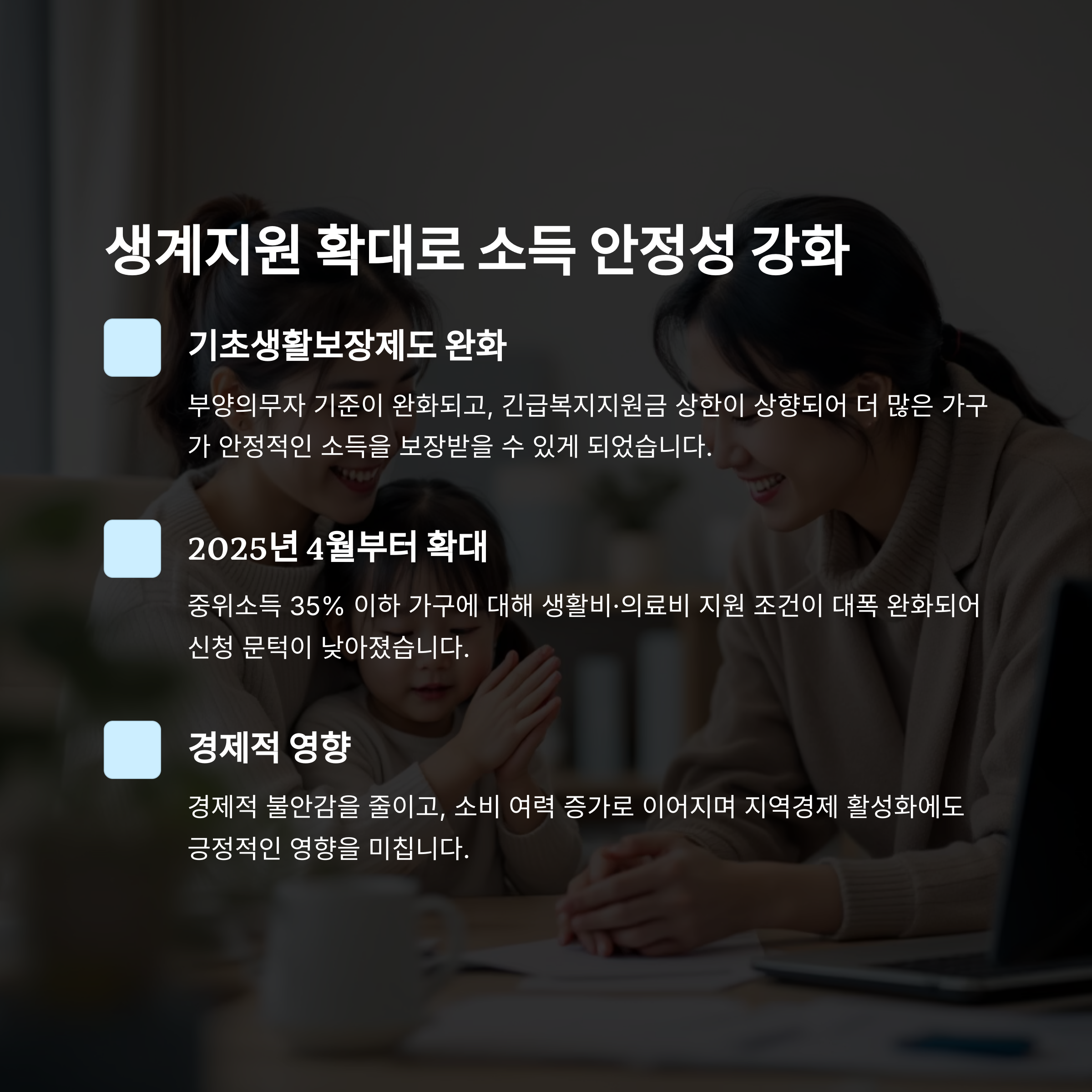 첫째, 생계지원 확대는 소득 안정성 강화로 연결