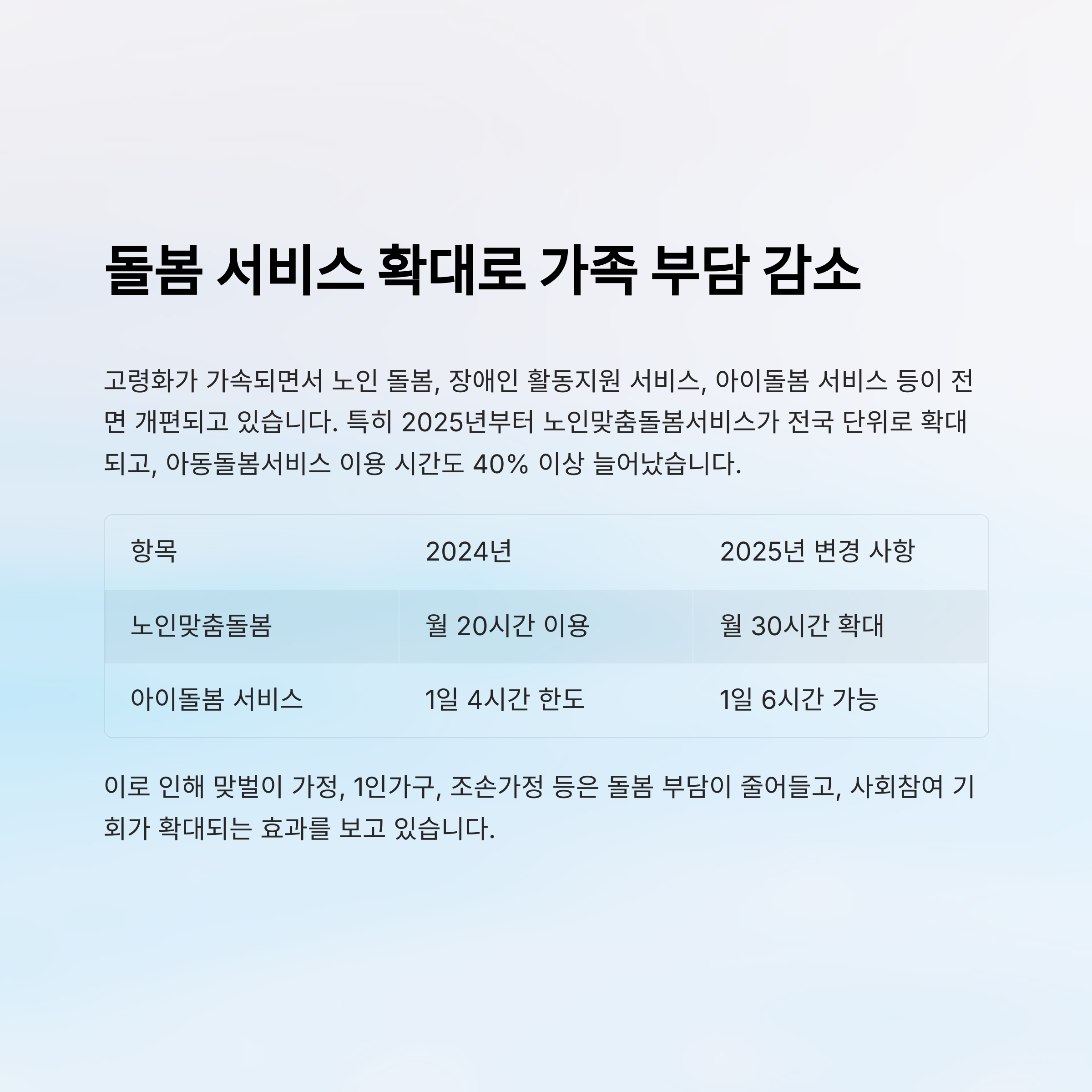 아이 돌봄 서비스 등이 전면 개편되고 있습니다. 특히 2025년부터