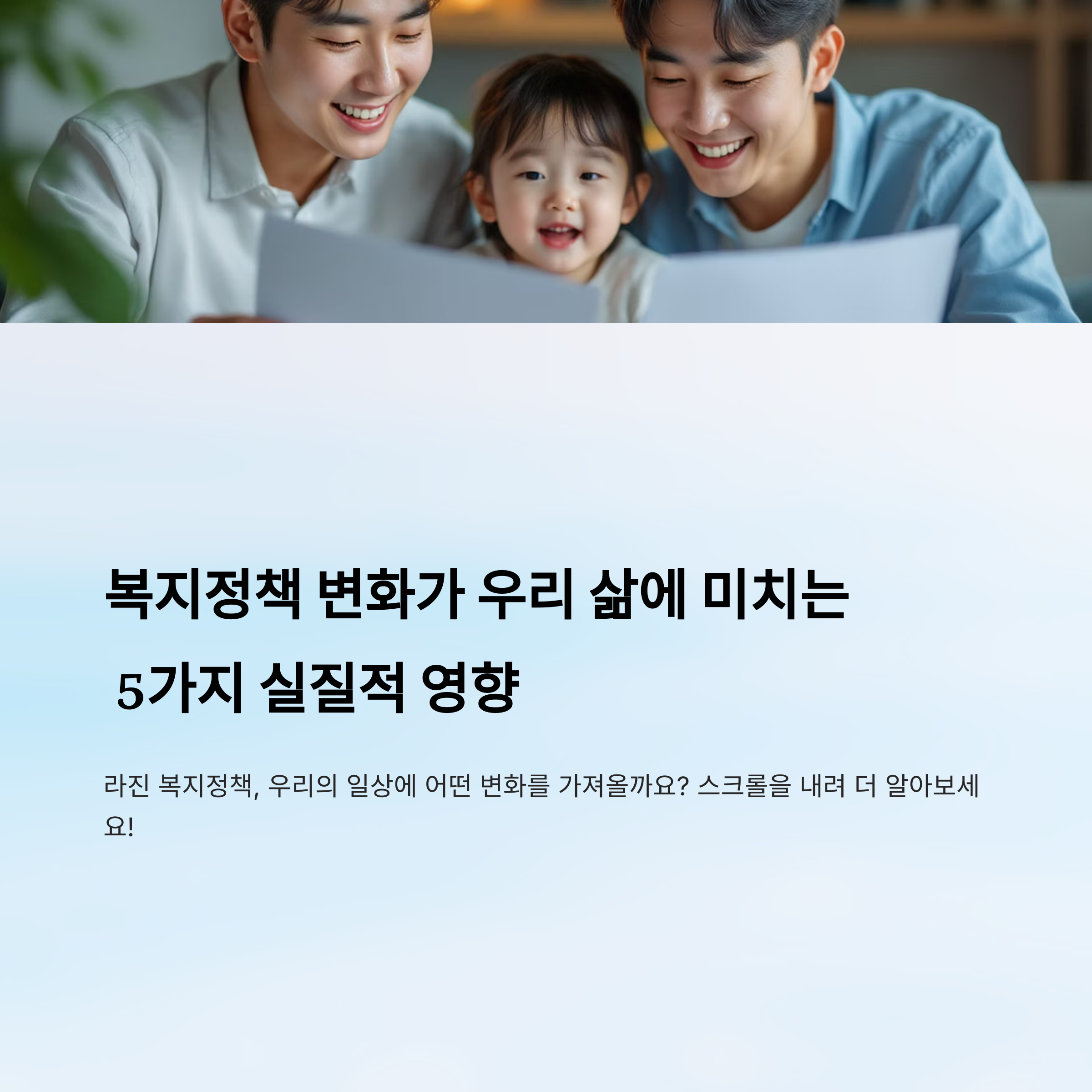 이러한 변화는 단순한 행정조치가 아니라 우리 삶 깊숙한 곳까지 영향을 미칩니다. 이 글에서는 복지정책 변화가 실제 일상에 미치는 주요 영향들을 분석하고, 앞으로 우리가 어떻게 준비해야 할지 안내해 드립니다.