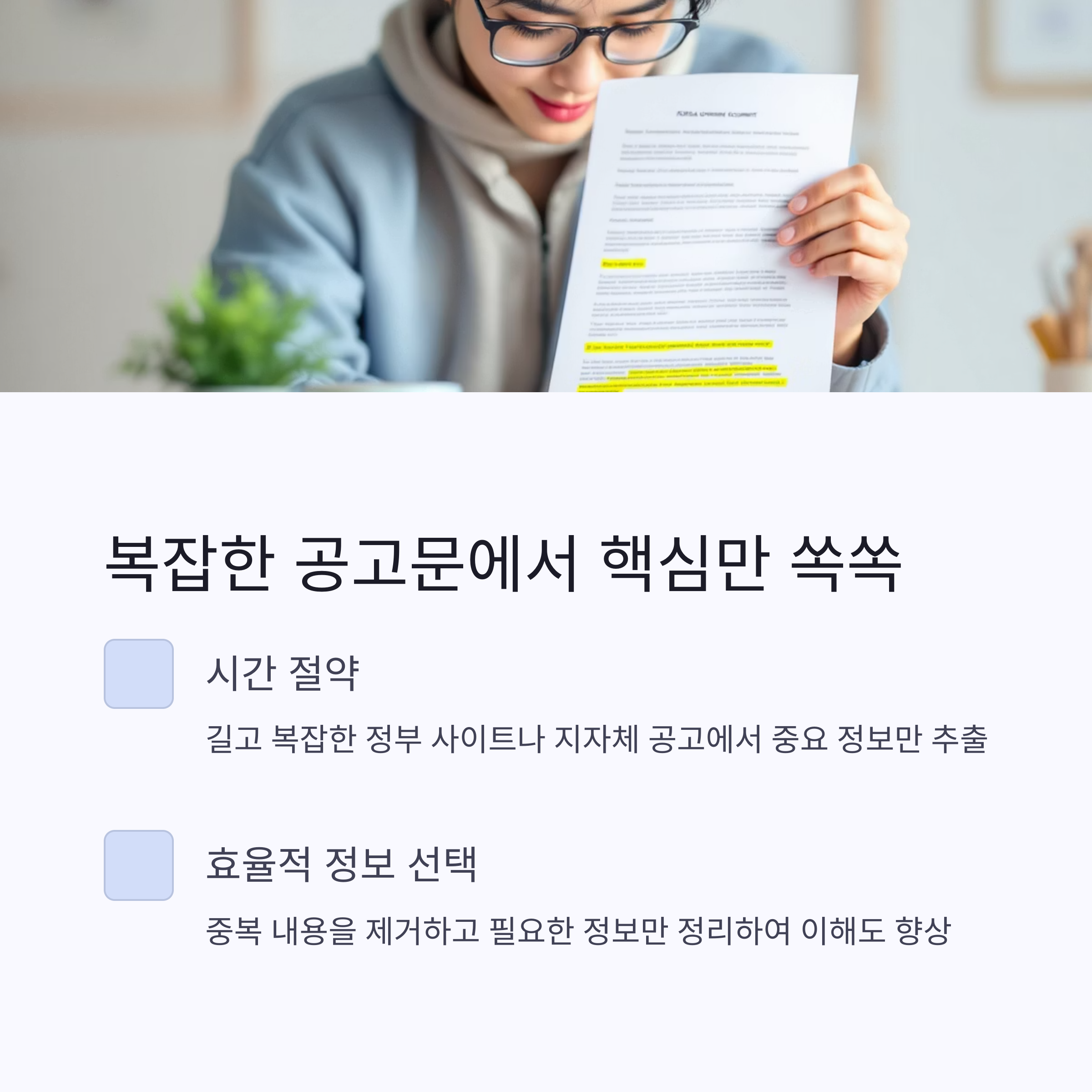긴 글을 읽는 시간을 줄여주고, 필요한 정보만 골라볼 수 있습니다.