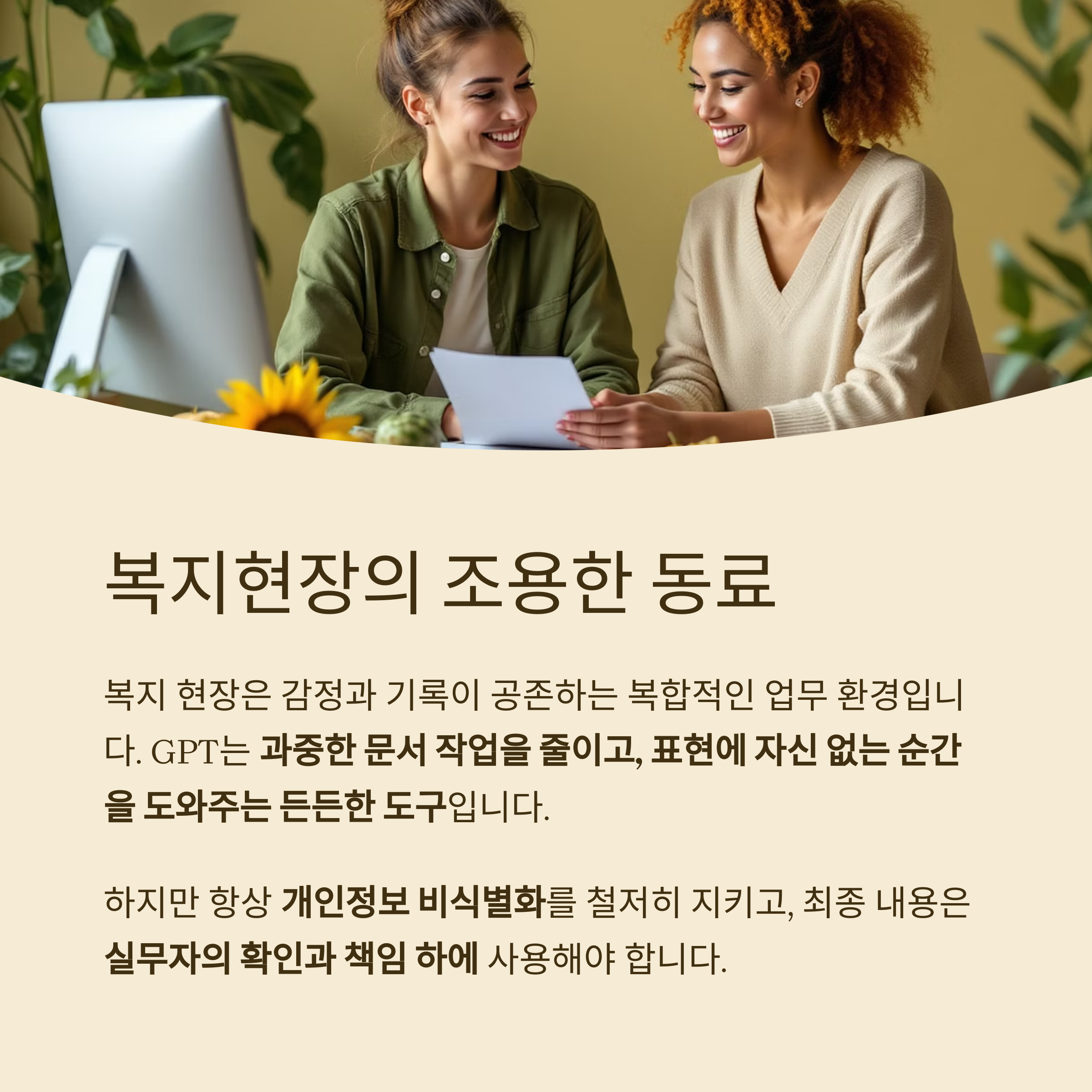 | 사회복지사 GPT 활용, 상담일지 자동화는 현실이 될 수 있을까? (2) | 2025.06.01 |