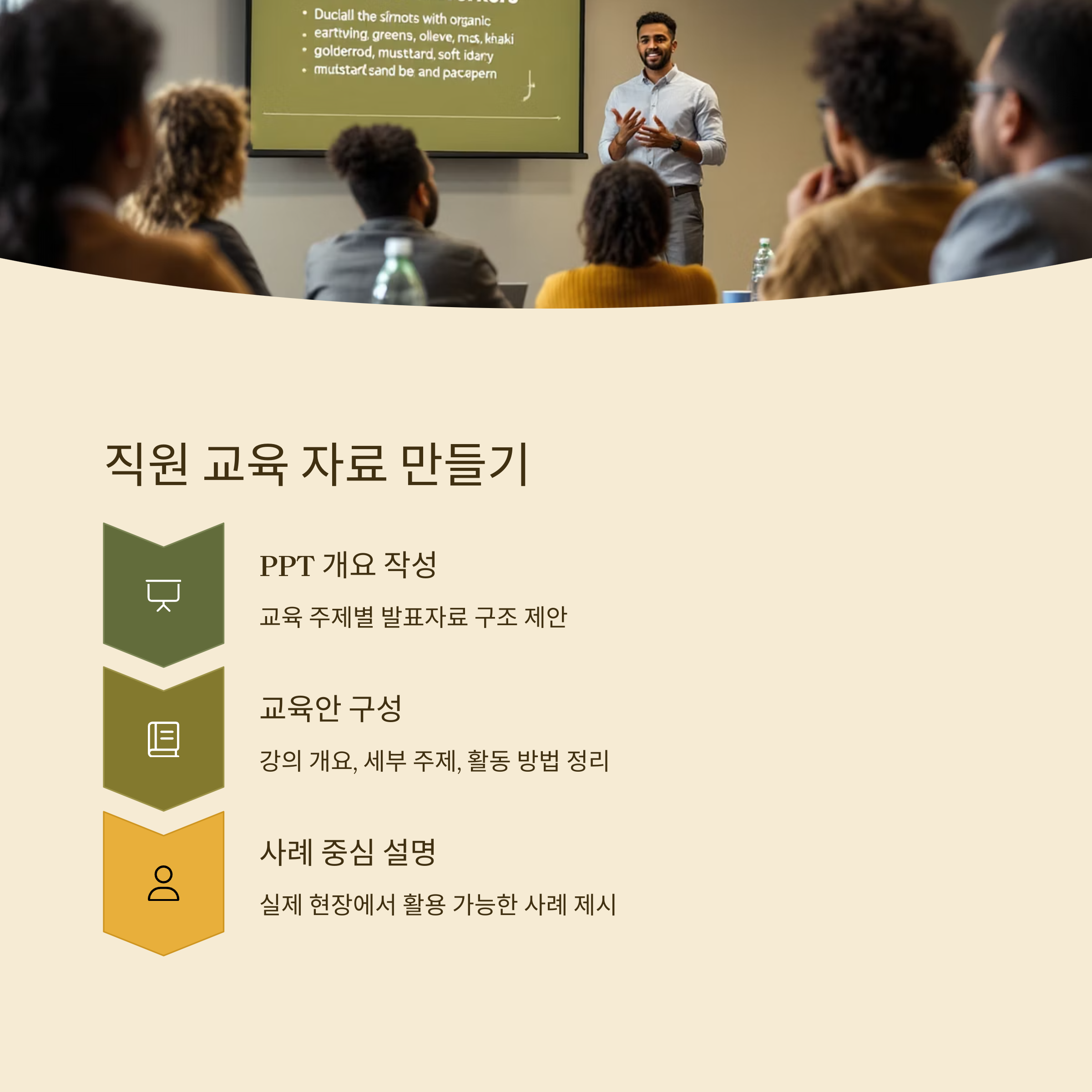 A. 가능합니다. PPT 개요, 교육안, 사례 중심 설명 등 다양하게 활용할 수 있습니다
