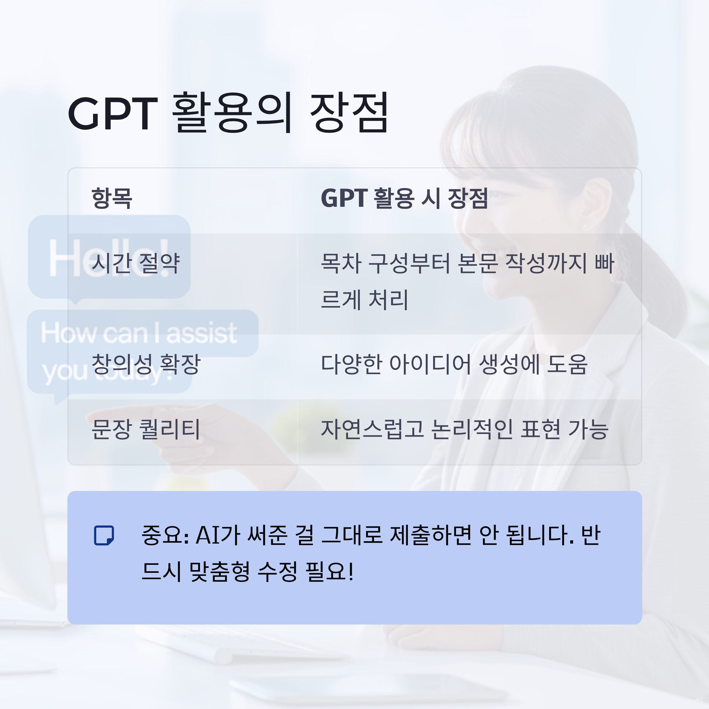 단, 중요한 건 "AI가 써준 걸 그대로 제출하면 안 된다"는 점이에요.