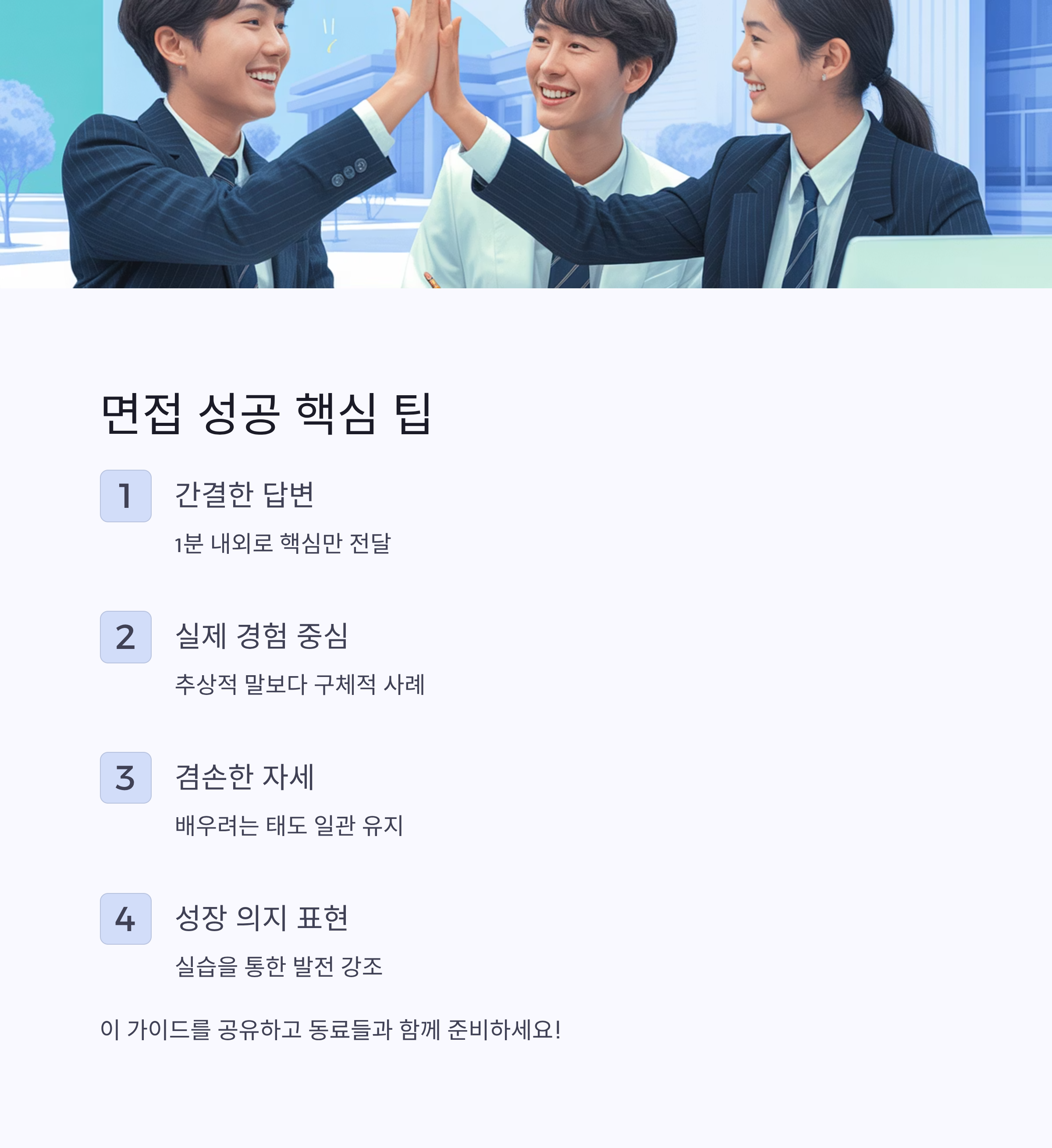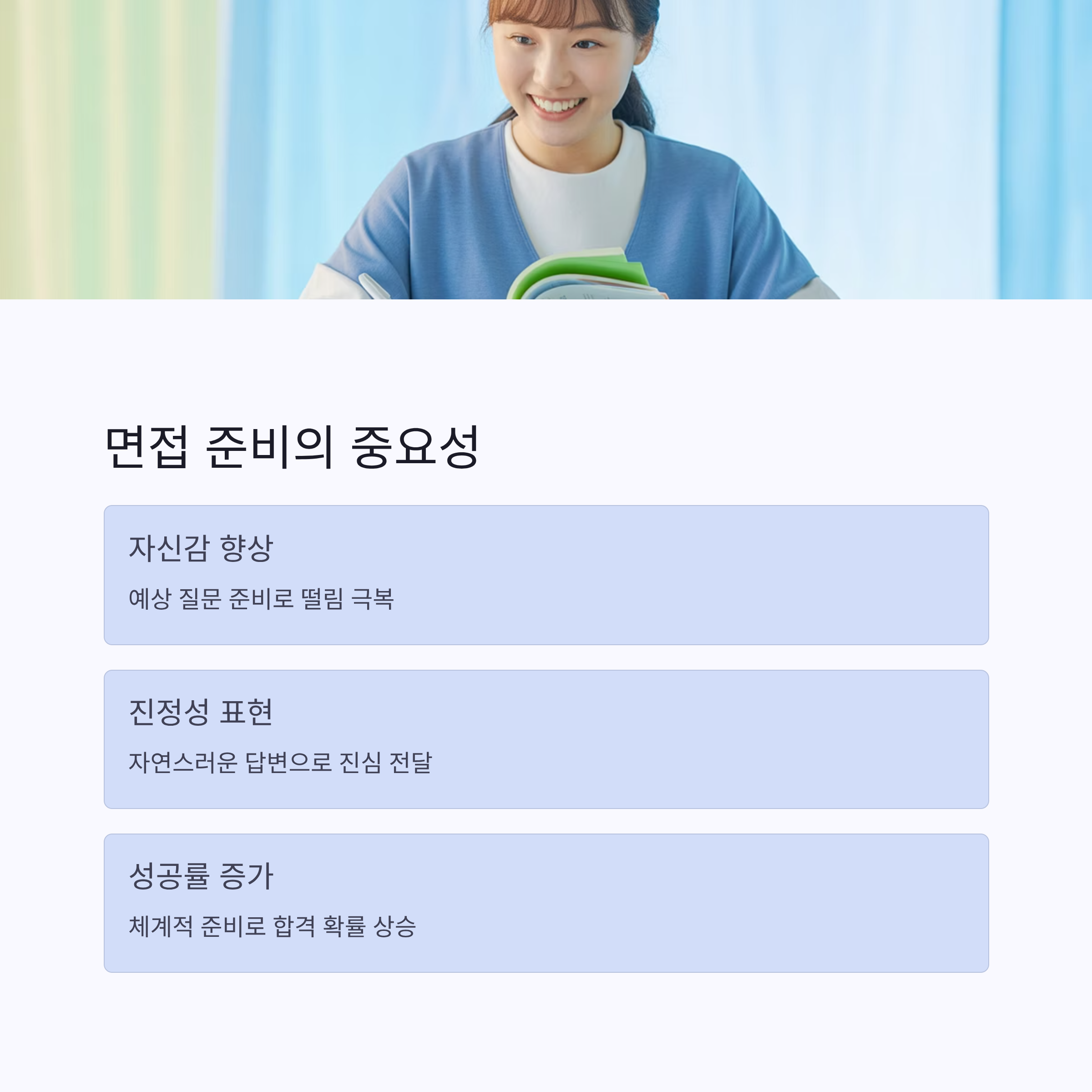 예상 질문을 충분히 준비해 두면 자신감 있게 답변할 수 있고, 진정성도 자연스럽게 드러납니다.