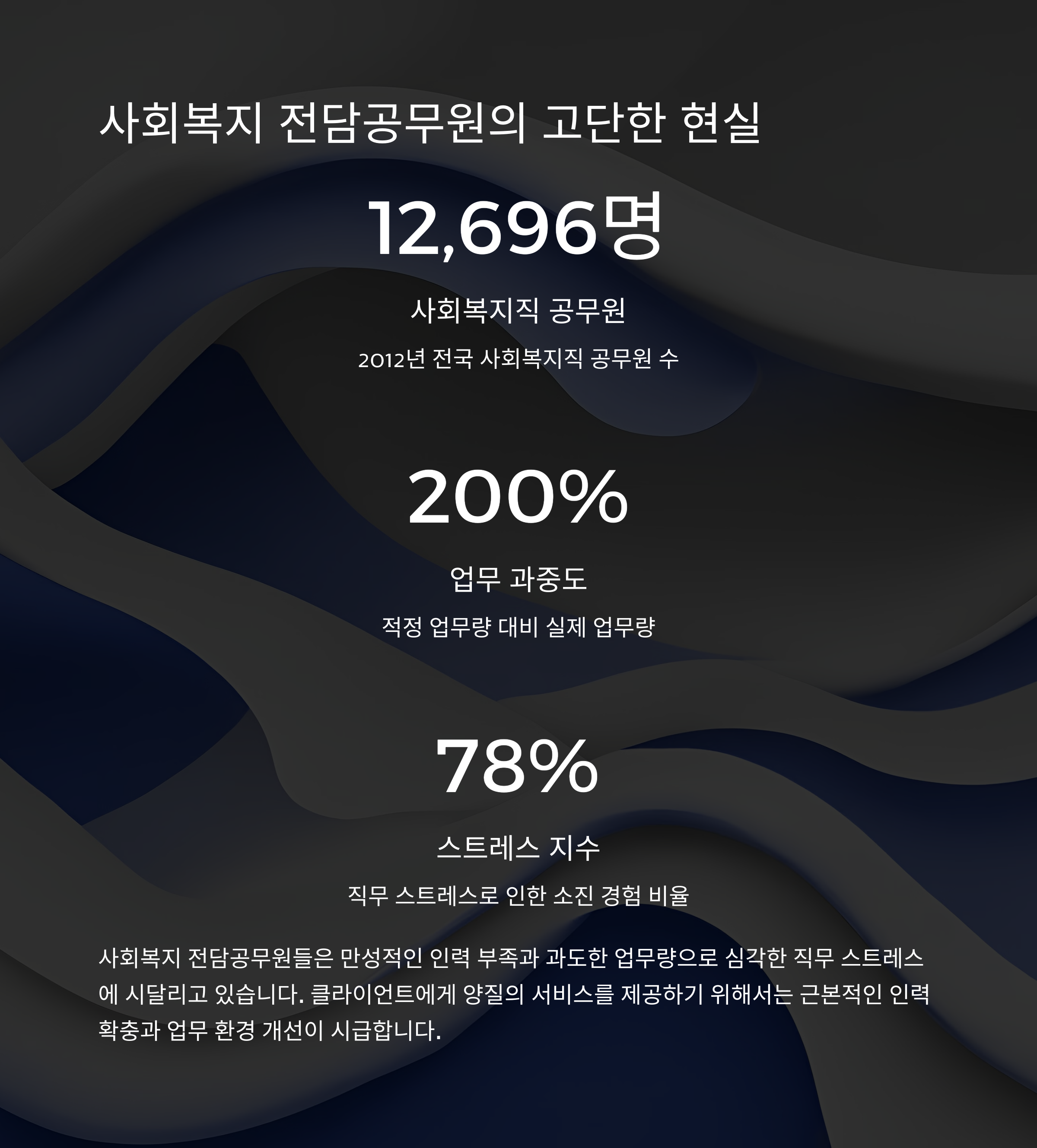 하지만 이러한 다양성을 이어가기 위해서야말로 사회복지직 공무원의 증가와 근무 환경 개선이 필요합니다.