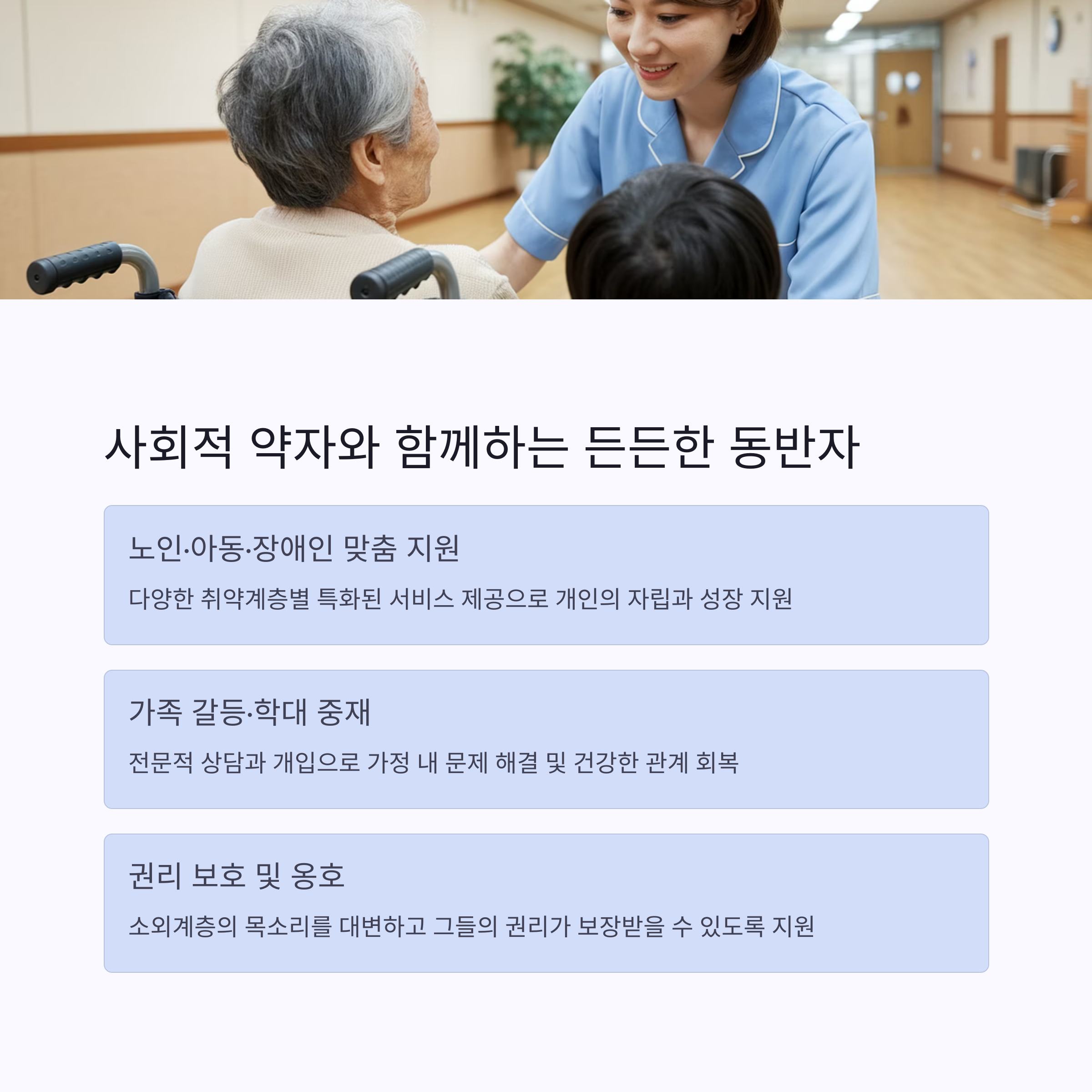 사회복지사는 단순히 복지 서비스를 제공하는 것에만 그치지 않습니다.