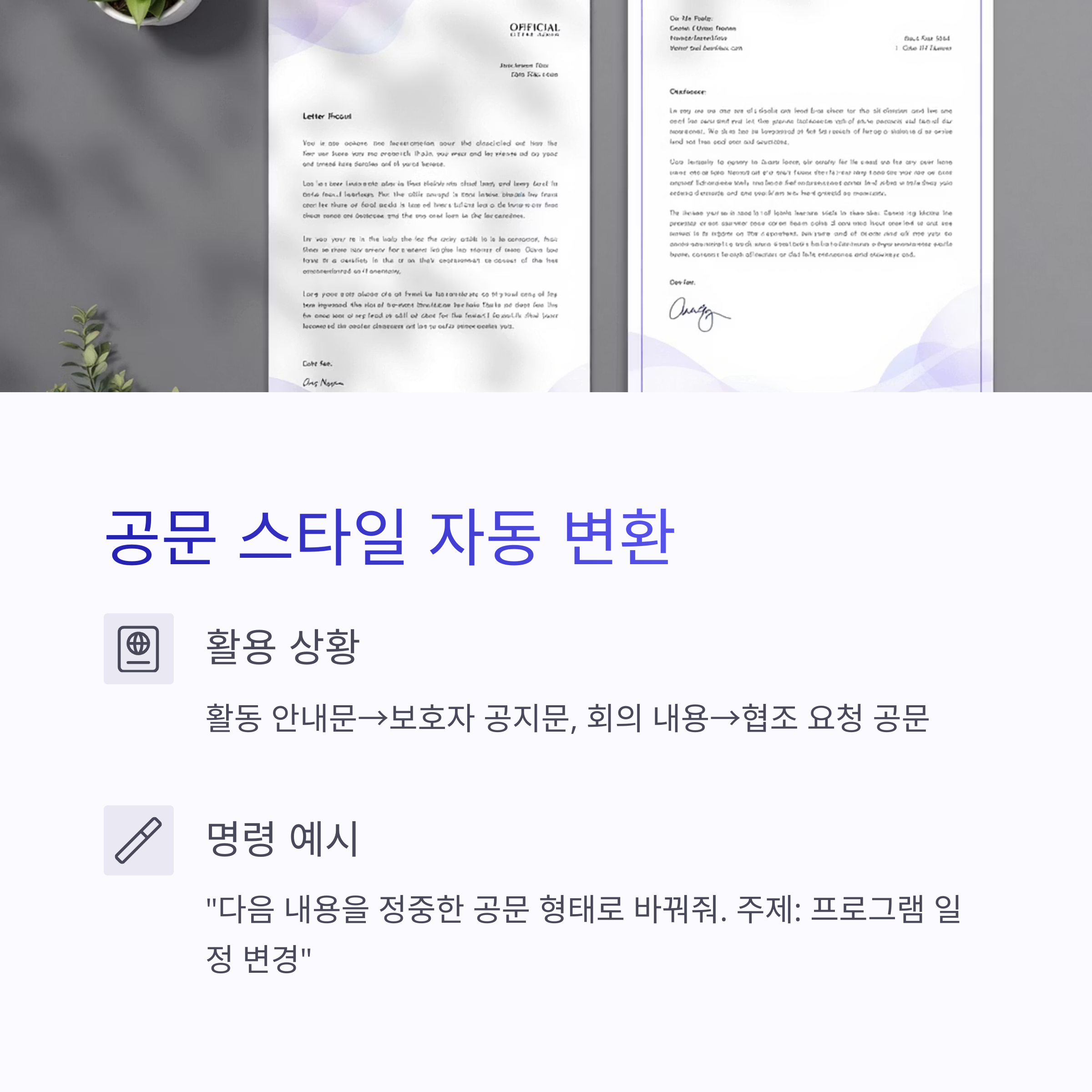 ① “이 문서, 공문 스타일로 바꿔줘”
