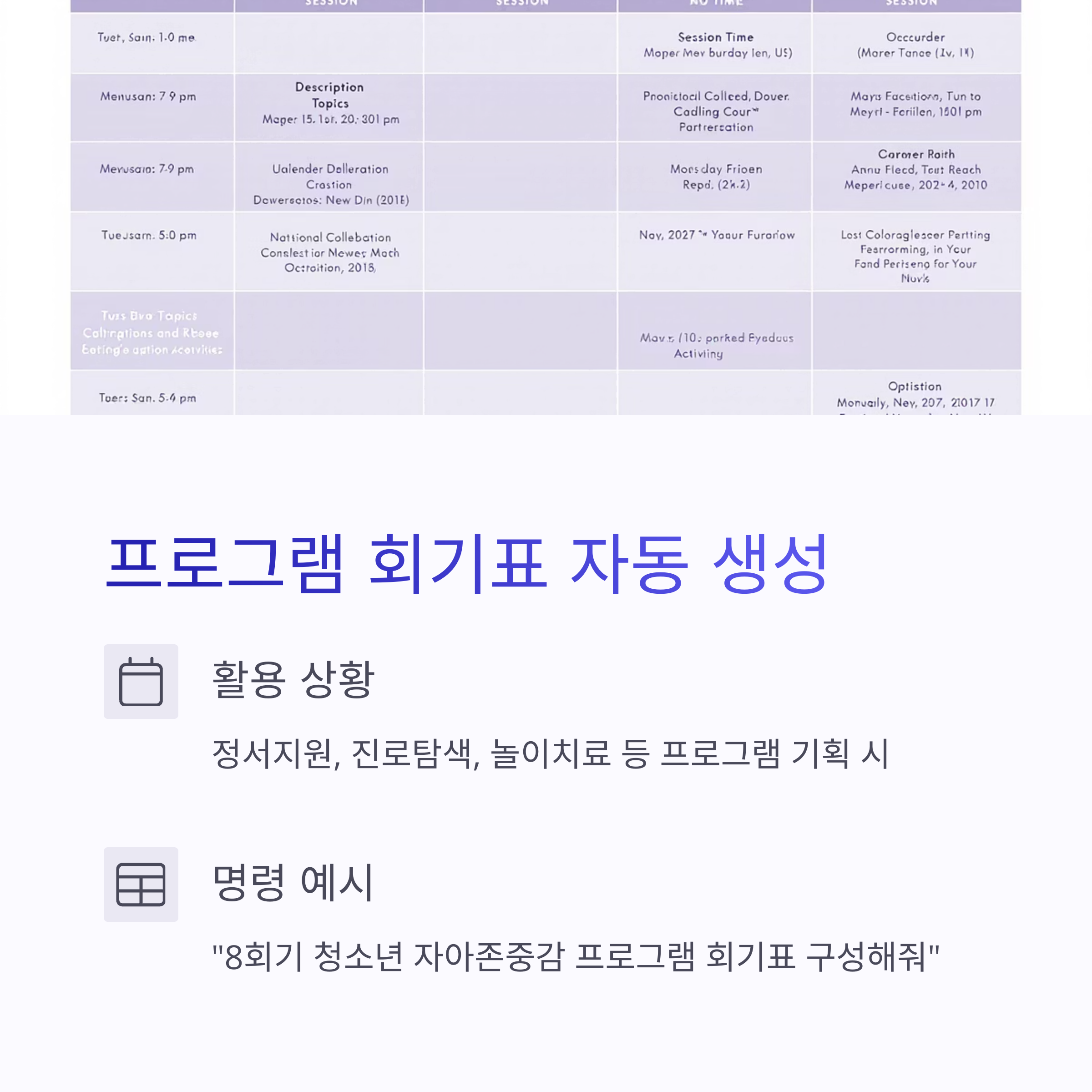⑤ “프로그램 회기표도 자동으로 만들어줘”