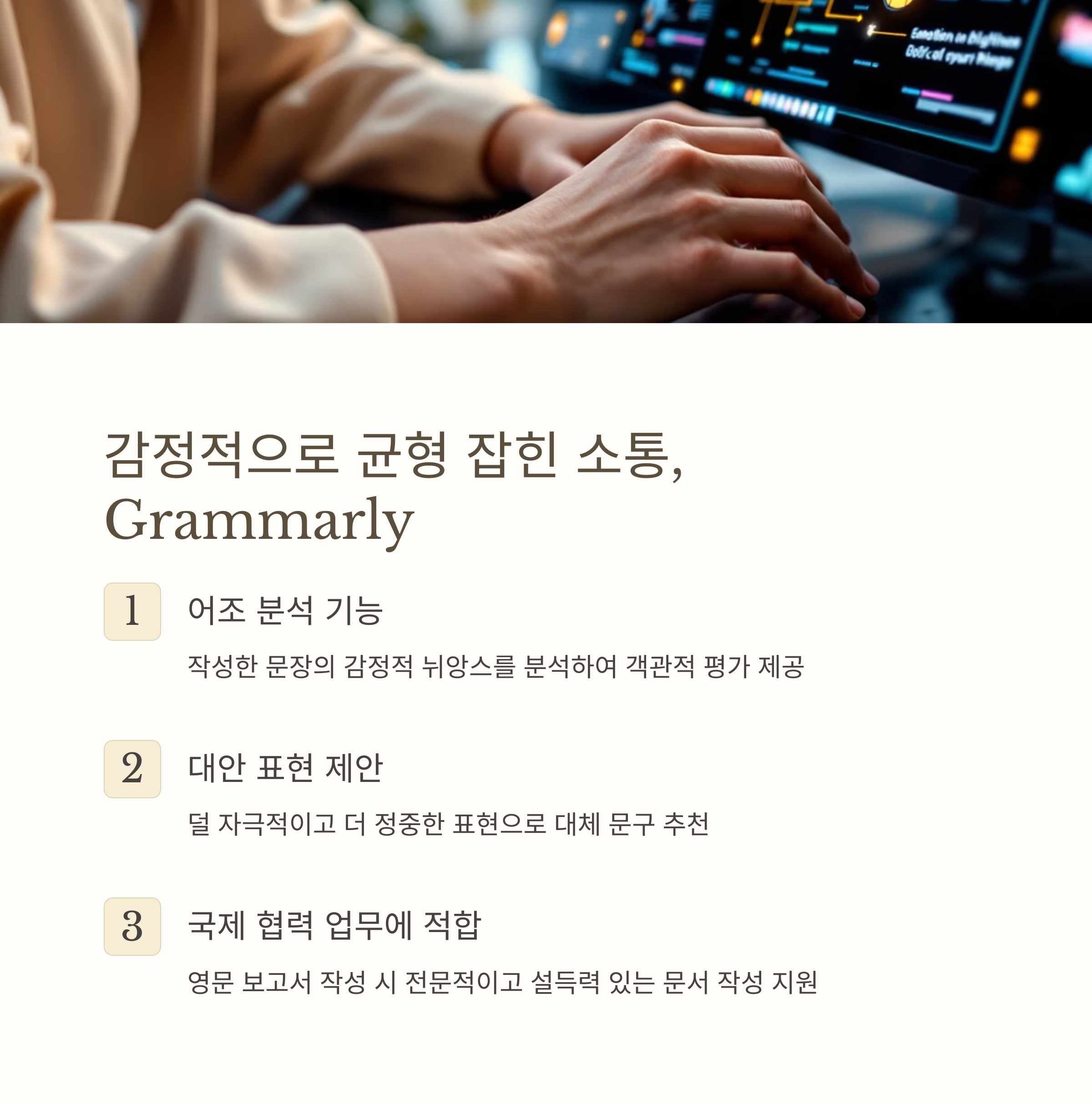 Grammarly는 작성한 문장의 어조를 분석하고, 감정적으로 덜 자극적인