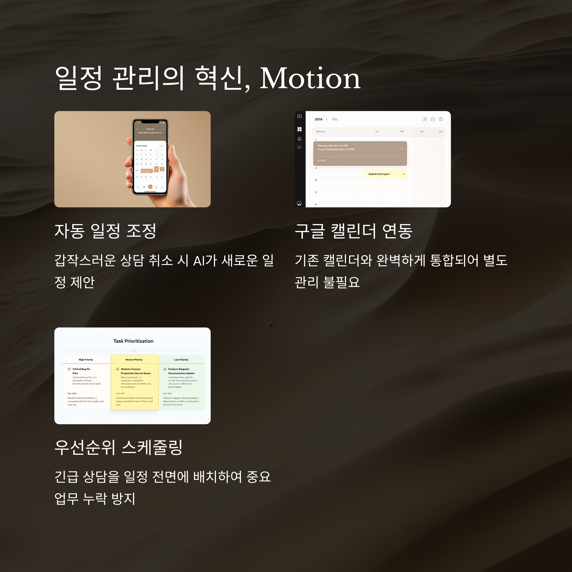 Google 캘린더와 연동이 가능하며, 우선순위 기반 스케줄링으로