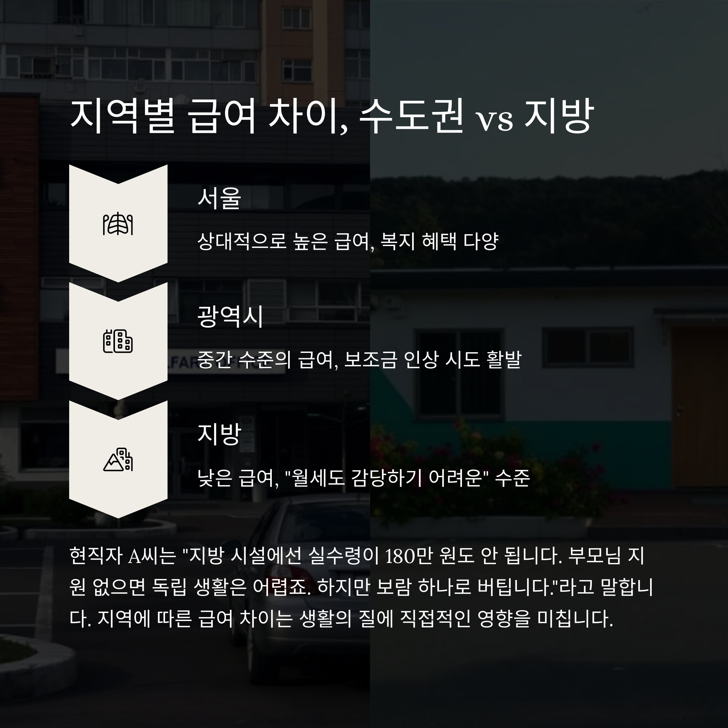 "지방 시설에선 실수령이 180만 원도 안 됩니다.