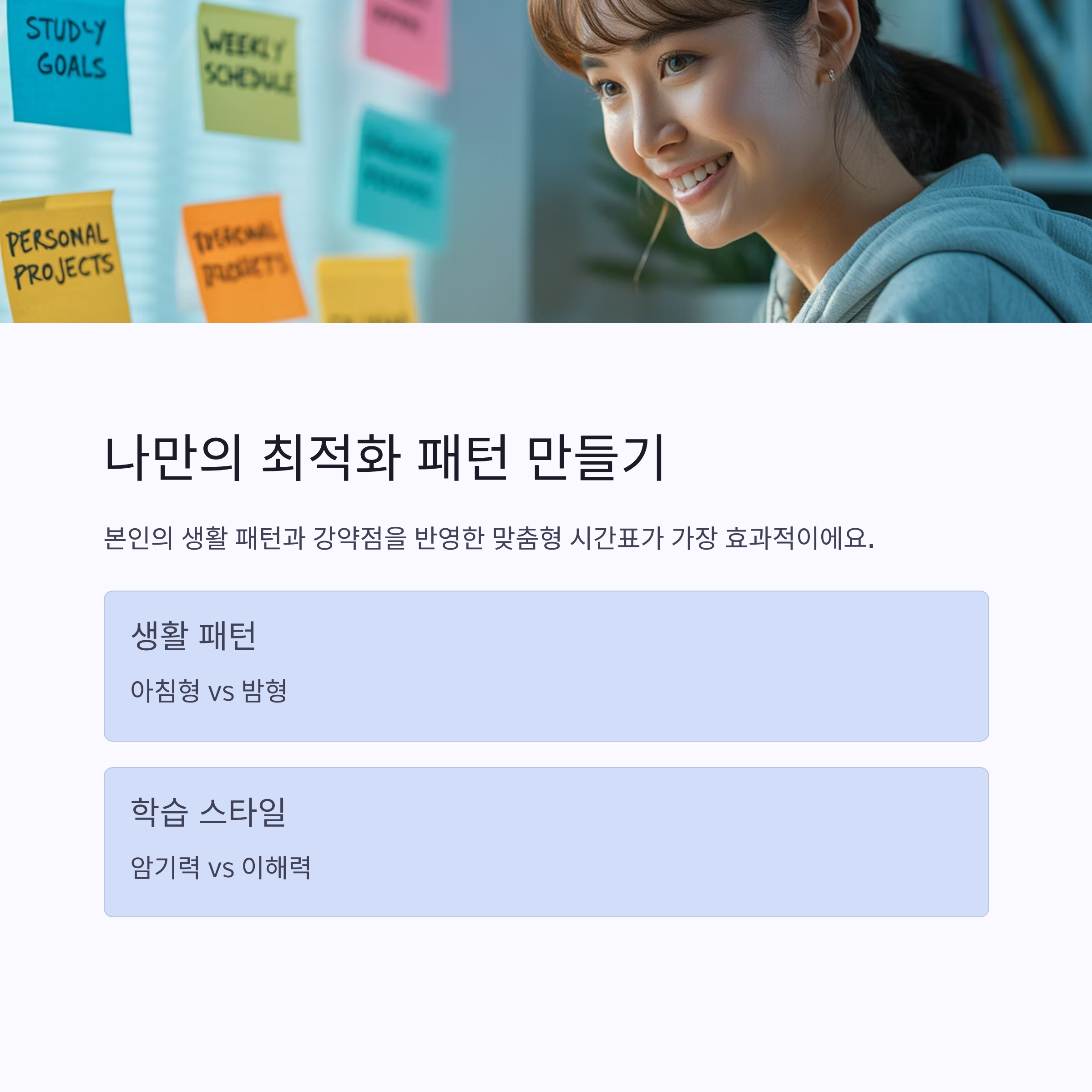 남의 시간표를 그대로 따라 하는 것보다 본인의 생활 패턴과 강약점을 반영하는 게 훨씬 중요해요. 아침형인지 밤형인지, 암기력이 강한지 이해력이 좋은지에 따라 시간을 다르게 조정하면 훨씬 효율적이에요.