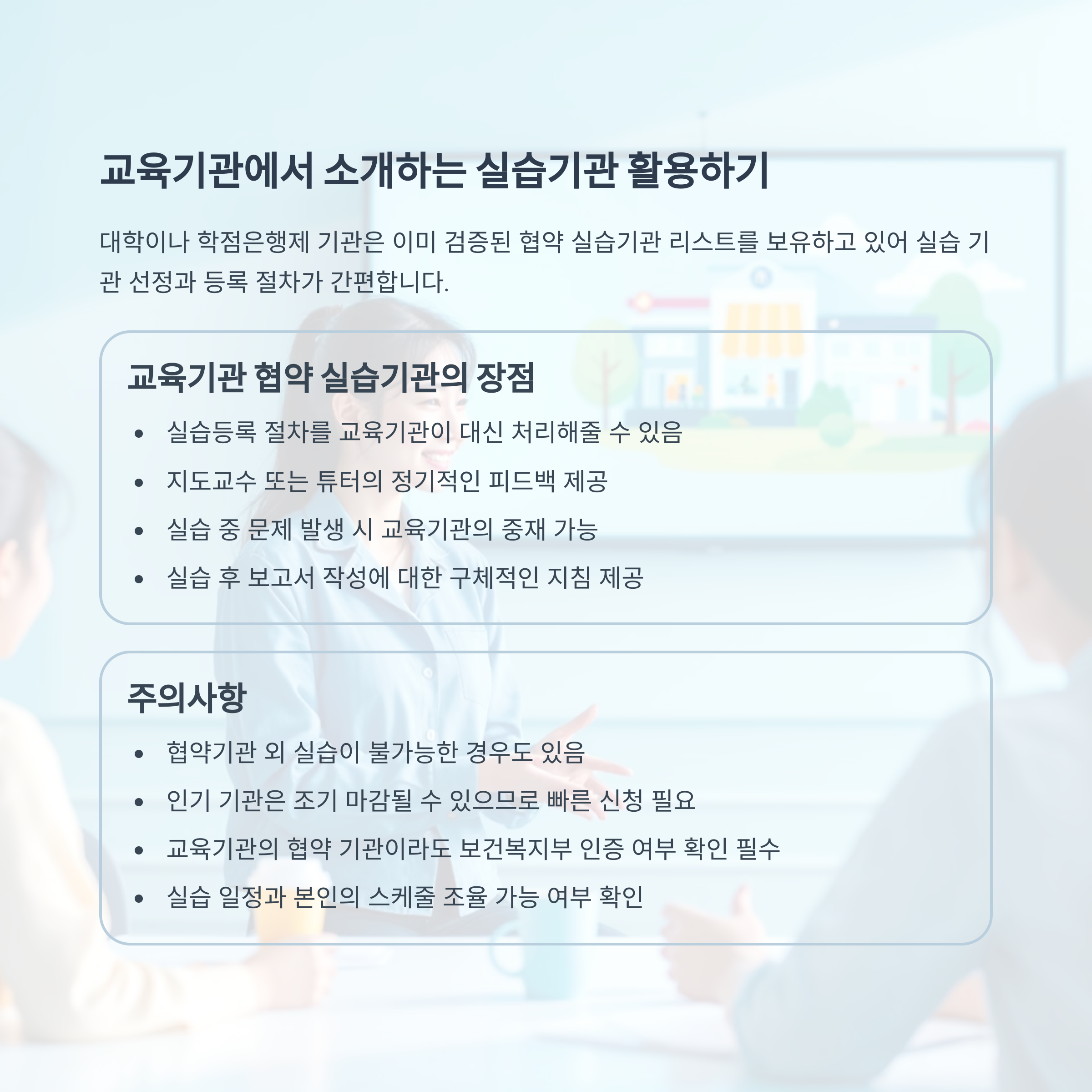 실습 신청 전 기관과 교육기관 양쪽 모두 확인해 보는 것이 좋습니다.