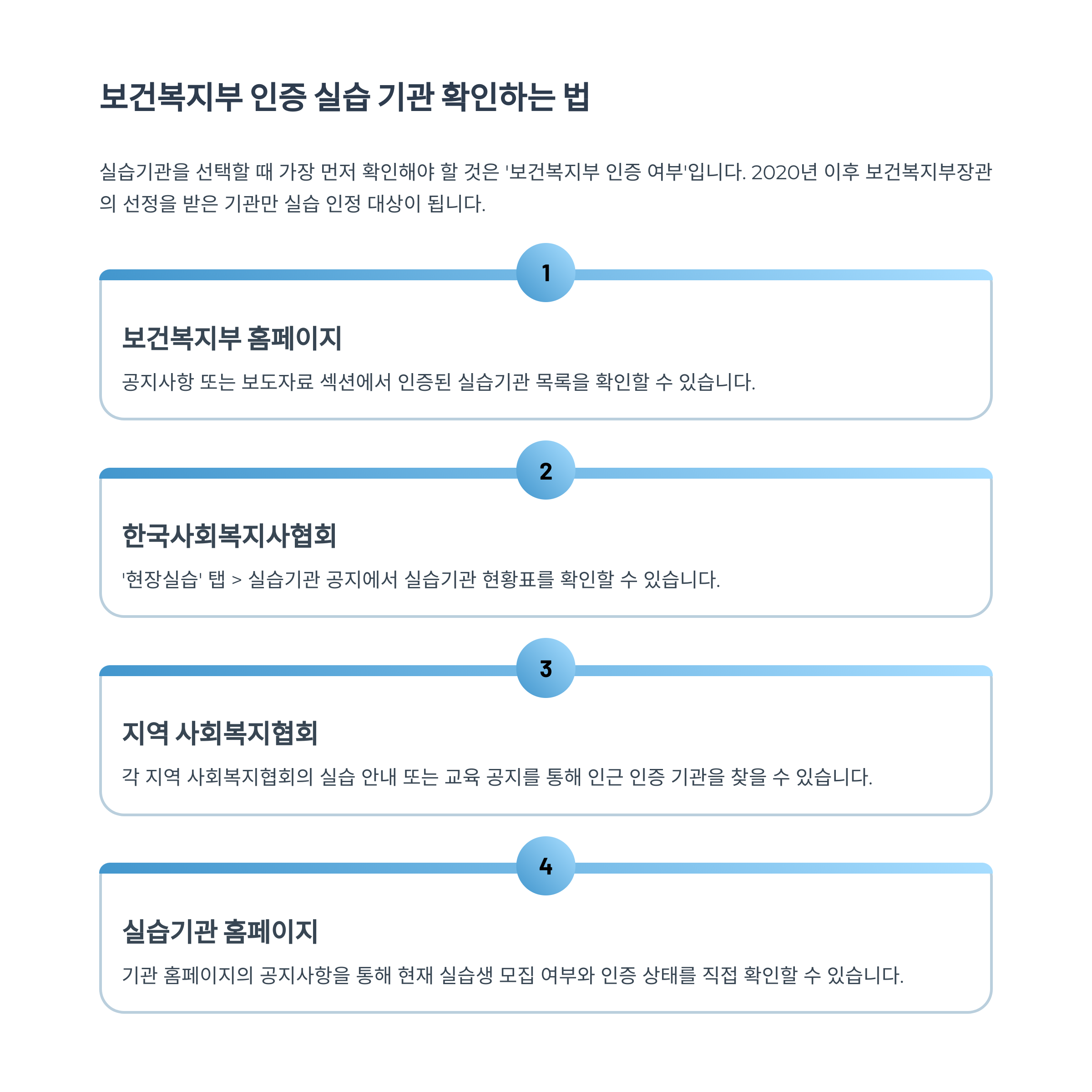 실습기관을 선택할 때 가장 먼저 확인해야 할 것은 ‘보건복지부 인증 여부’입니다.