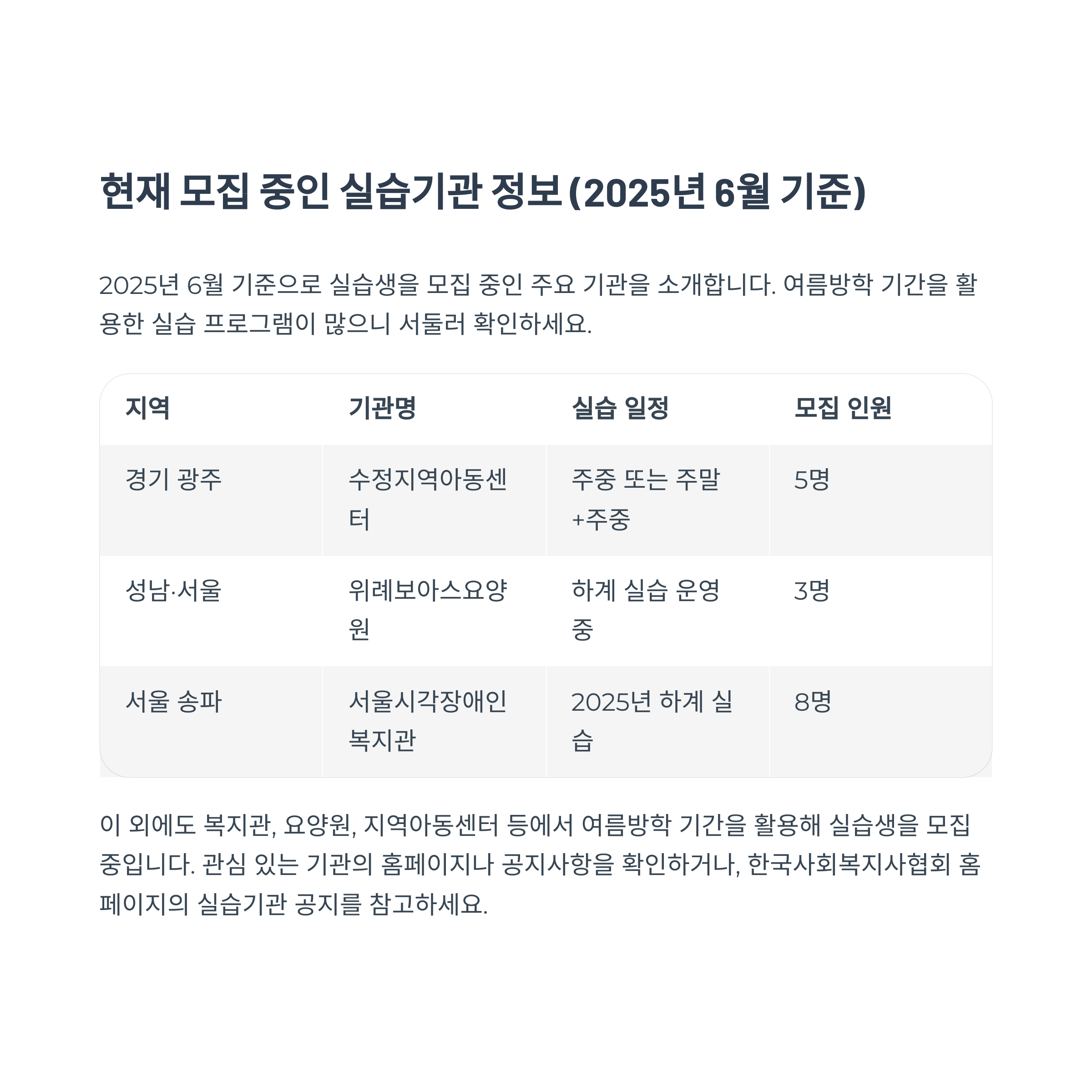 2025년 6월 기준으로 실습생을 모집 중인 주요 기관은 다음과 같습니다.