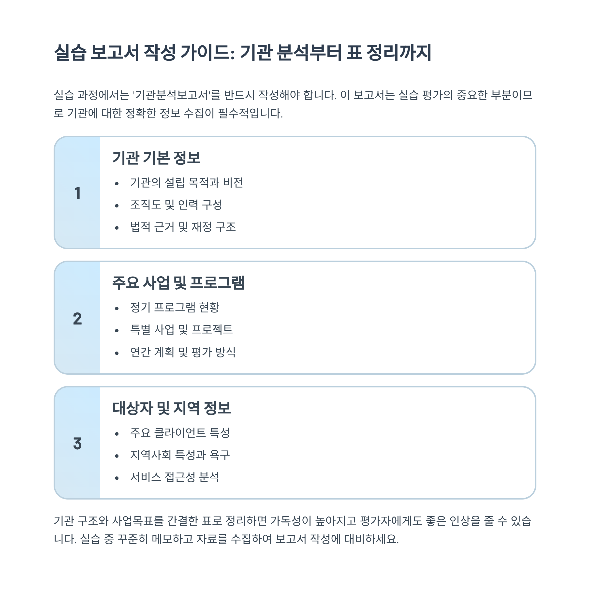 7. 실습 보고서, 기관 분석부터 표 정리까지