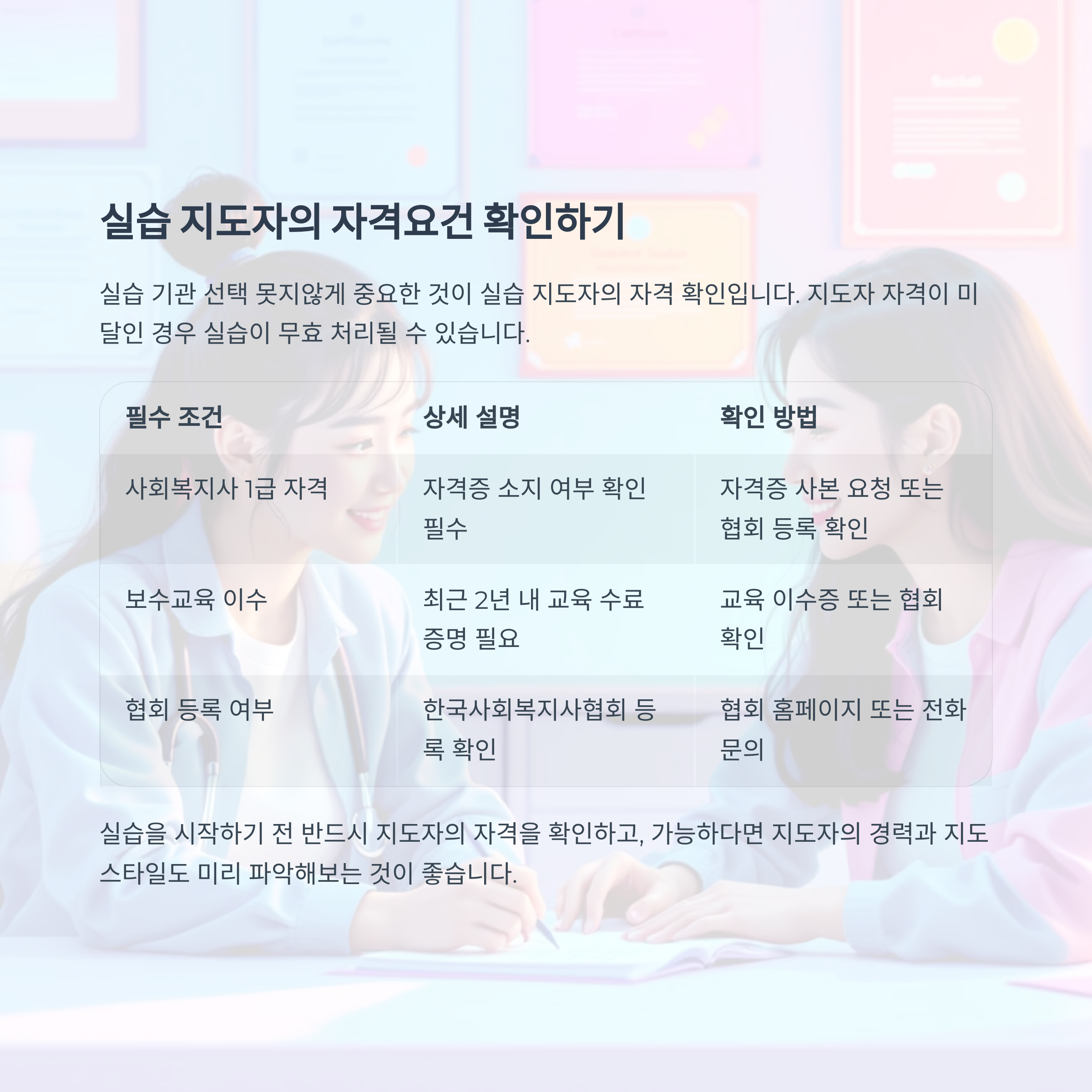 2025년은 실습 요건이 달라진 만큼, 실습기관 선택이 자격증 취득의 핵심 관문이 되었습니다.