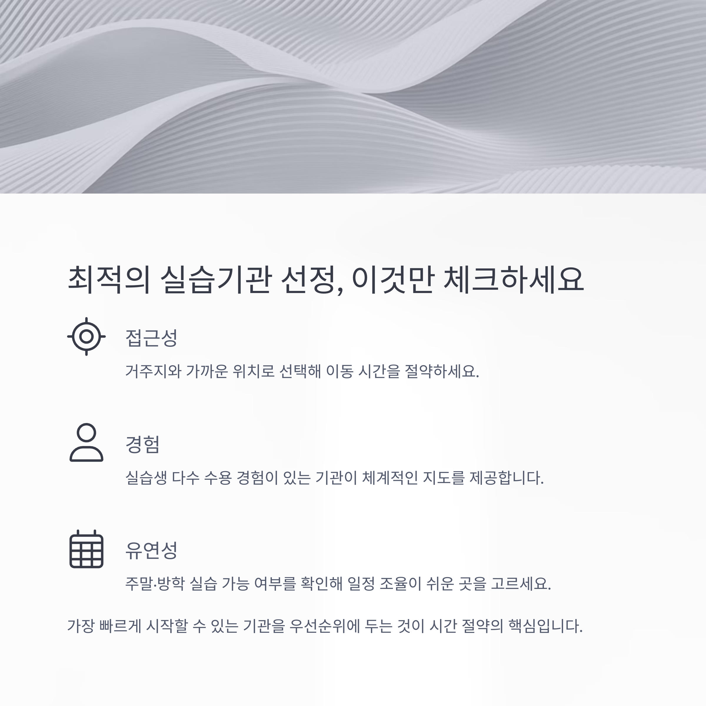 좋은 실습기관을 찾는 것이 곧 성공적인 실습 일정의 핵심입니다.