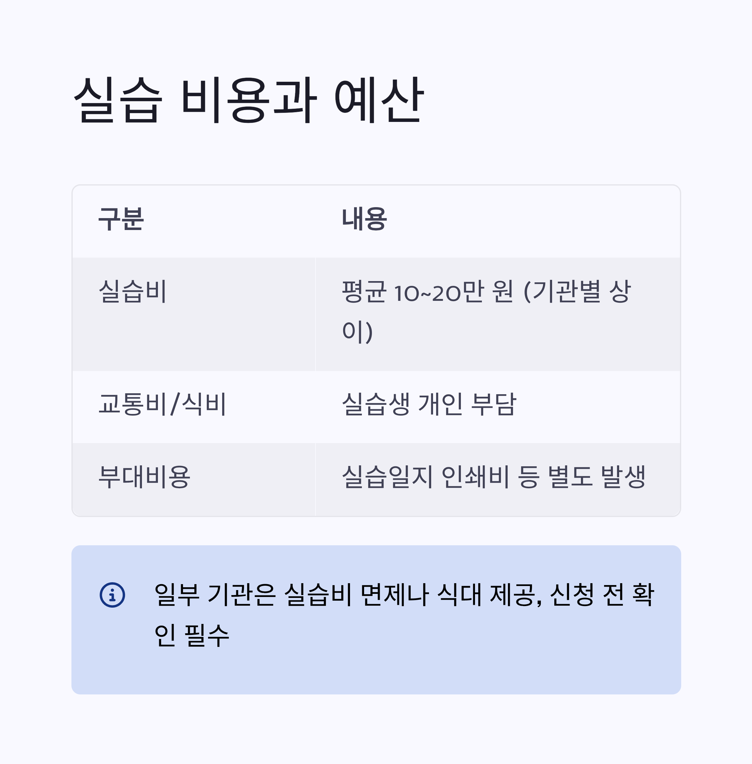| 부대비용 | 실습일지 인쇄비 등 별도 발생 가능 |