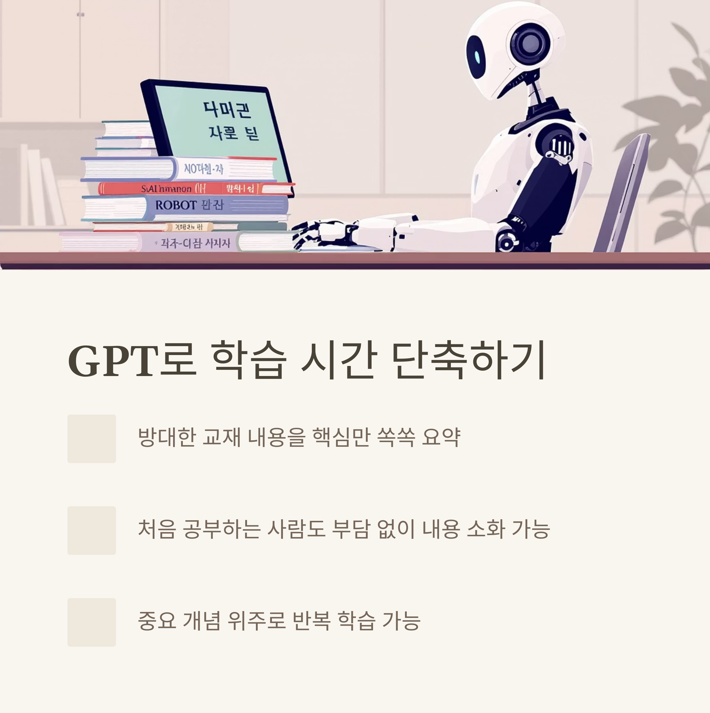 GPT는 긴 교재 내용을 핵심만 뽑아 요약해 주기 때문에,