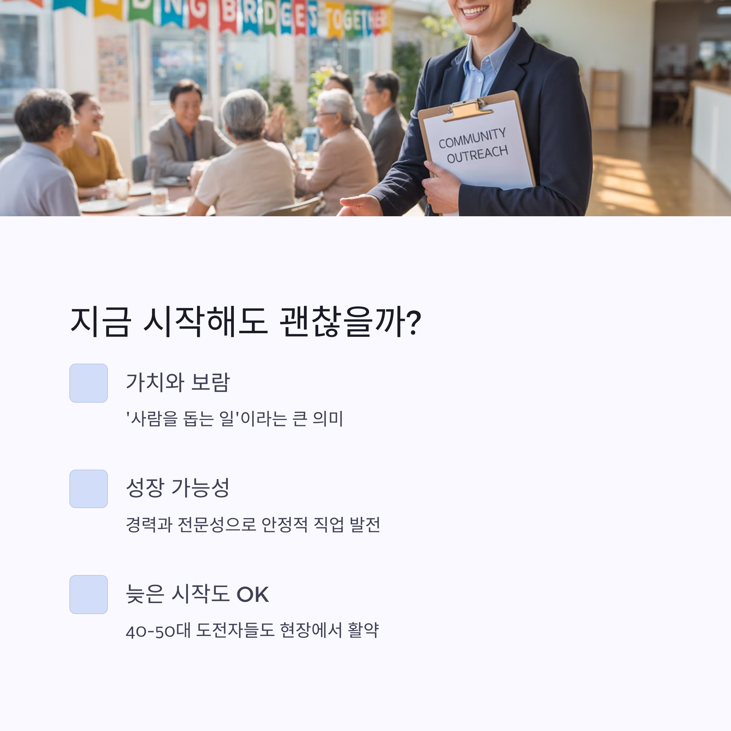 결론적으로, 사회복지사는 지금 시작해도 충분히 도전할 만한 가치가 있는 직업이에요.
