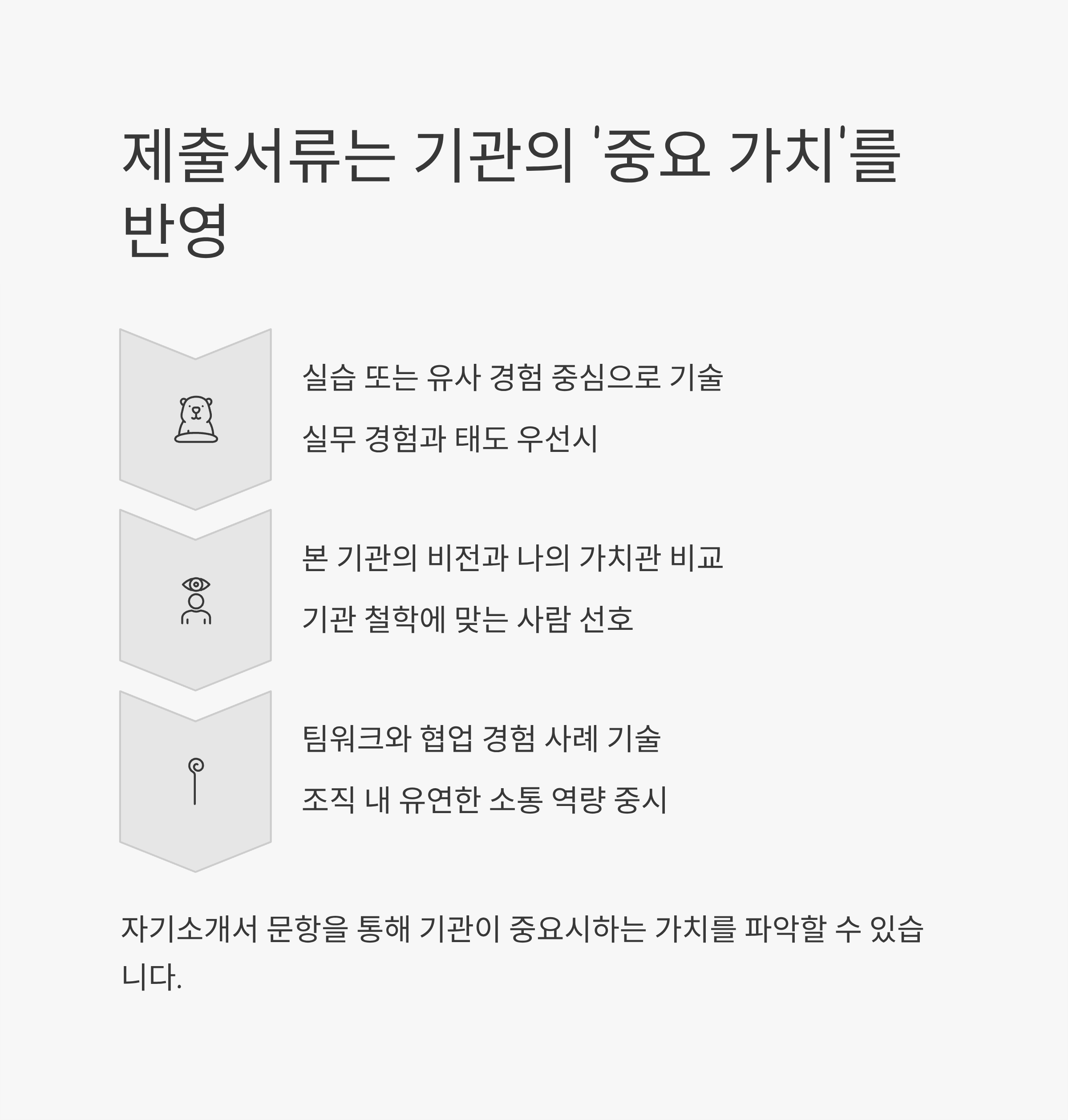 이 문항들을 통해 자기소개서의 핵심 서술 방향을 설정할 수 있습니다.