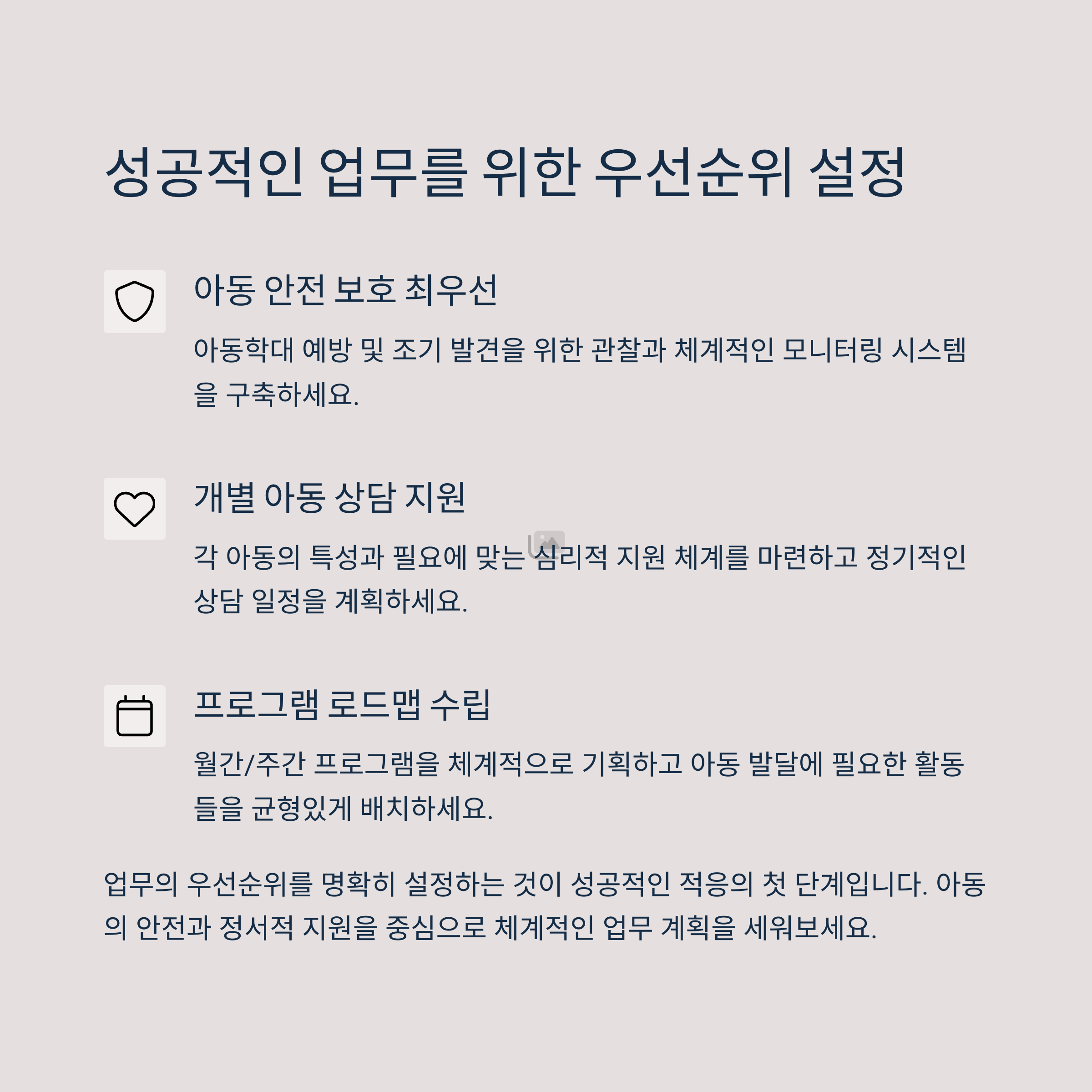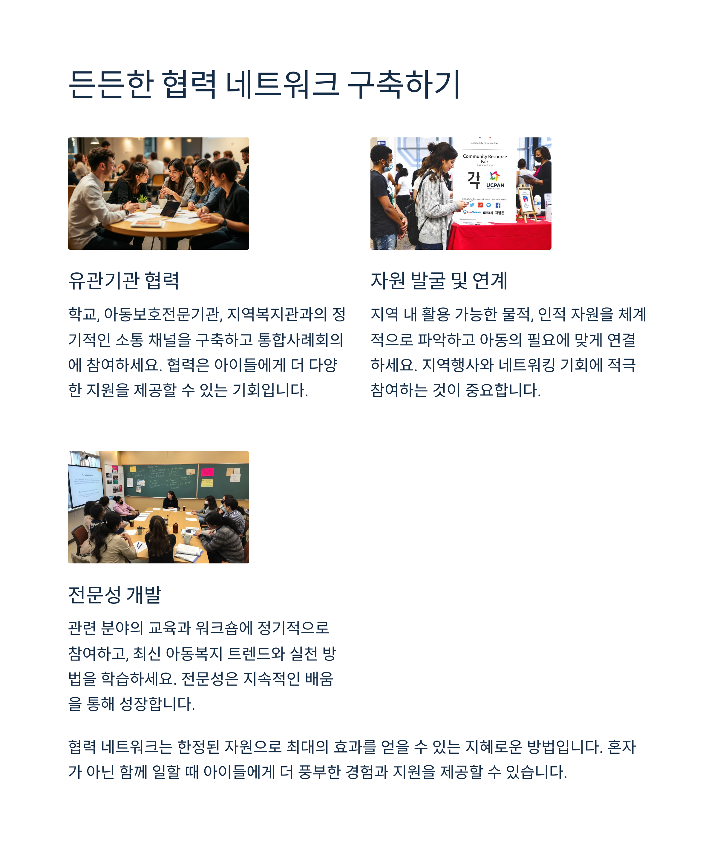 업무 구조를 명확히 이해하고, 효과적인 우선순위 설정, 스트레스 관리, 동료와의 소통 능력까지, 새롭게 사회복지사의 길을 걷기 시작한 분들에게 실질적인 도움이 되기를 바랍니다. 아동복지의 핵심 거점인 지역아동센터에서 보다 높은 직무 만족도를 누릴 수 있도록 이 글을 통해 지원합니다.
