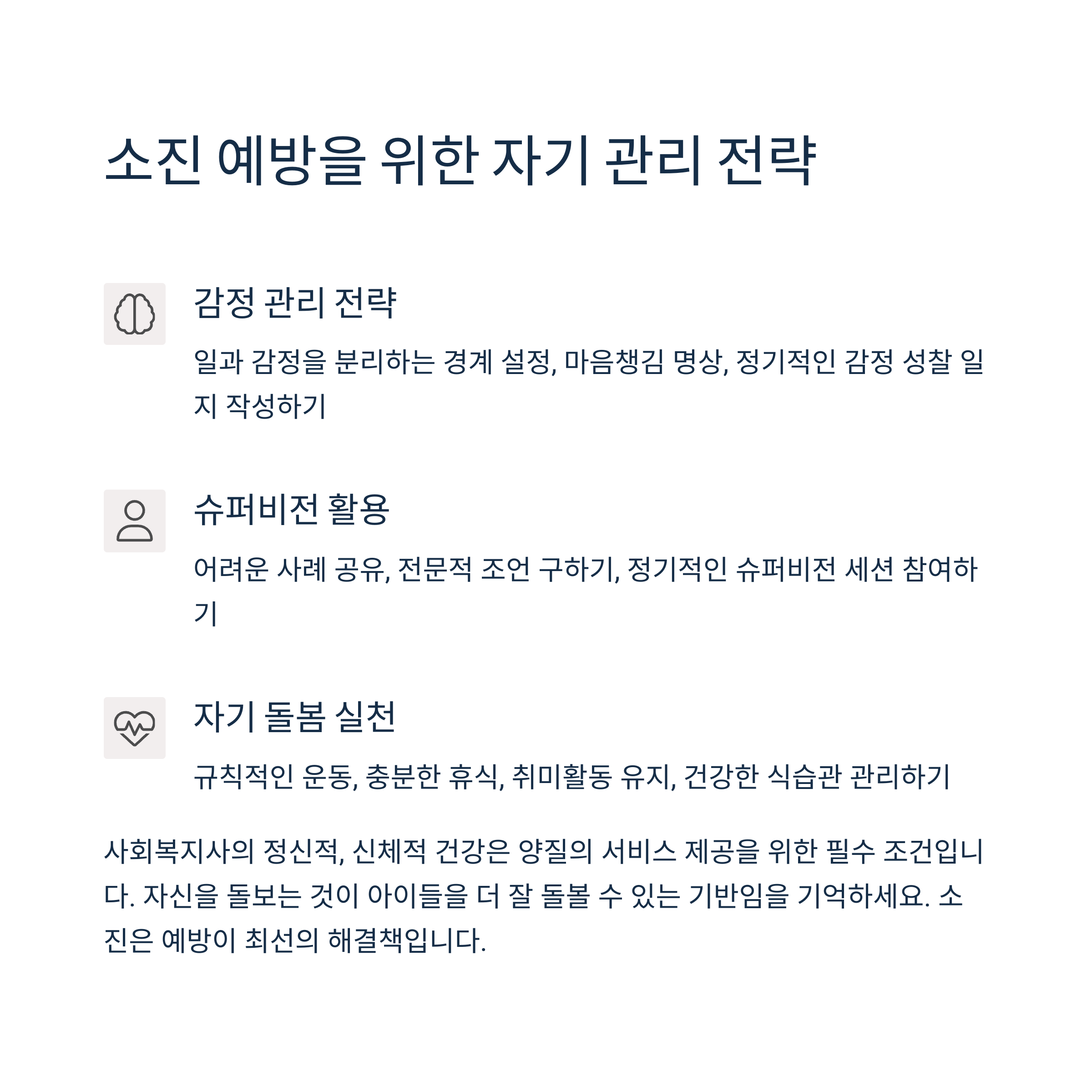 지역아동센터에서 사회복지사로 첫발을 내디디는 것은 아동의 삶에 깊이 관여하게 되는 뜻깊은 시작입니다. 다양한 실무를 동시에 수행해야 하지만, 그만큼 보람도 큽니다. 체계적인 우선순위 설정과 사례관리를 통해 중심을 잡고, 보호자 및 지역사회와의 소통을 통해 협력 기반을 다지세요. 스트레스 관리 전략과 동료와의 협업은 장기적인 직무 만족도에 큰 영향을 줍니다. 끊임없는 전문성 향상 노력은 더욱 효과적인 복지 실천으로 이어집니다. 본 글이 여러분의 첫 발령에 도움이 되길 바랍니다.