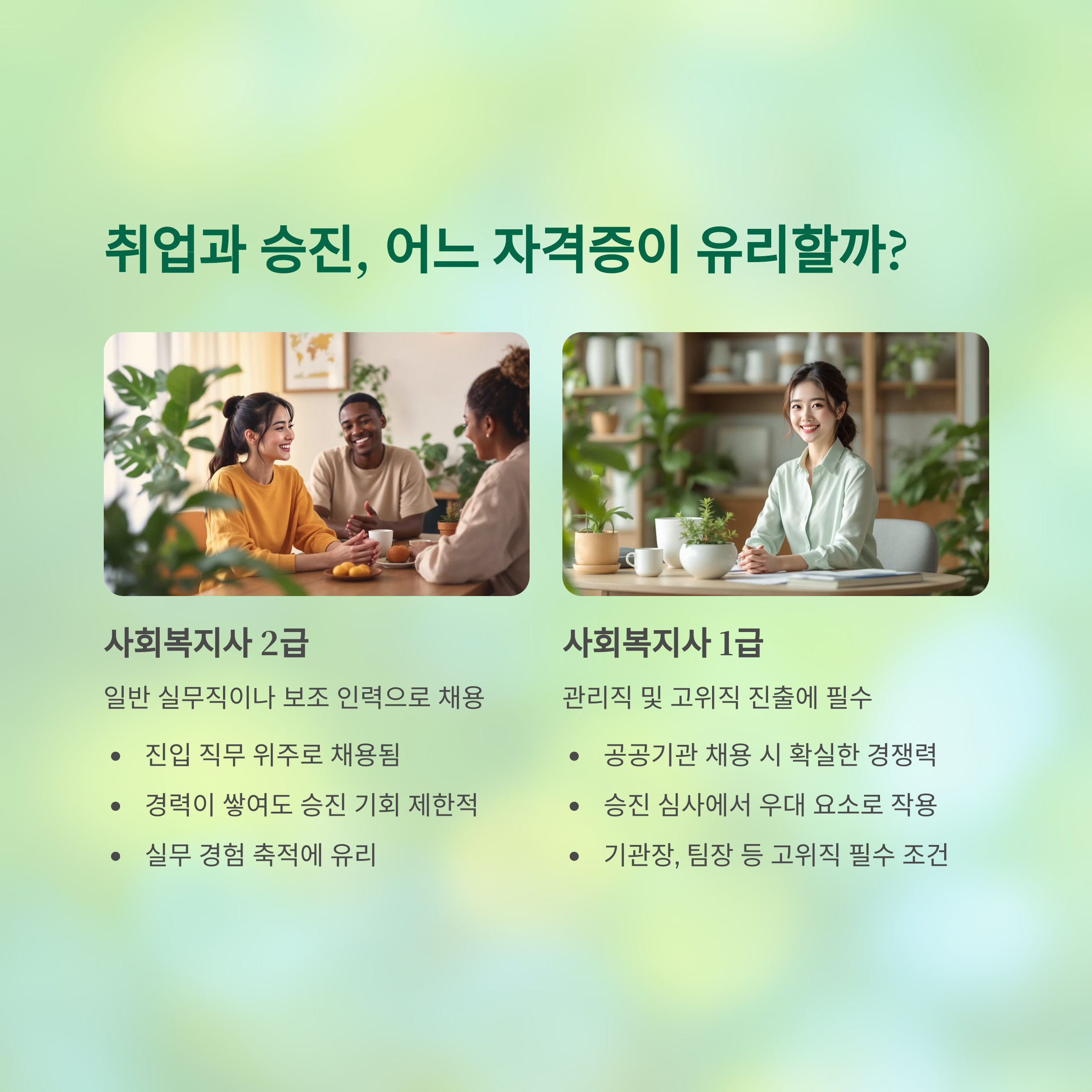자격증 선택이 커리어를 바꾼다! 사회복지사 1급 vs 2급의 모든 차이