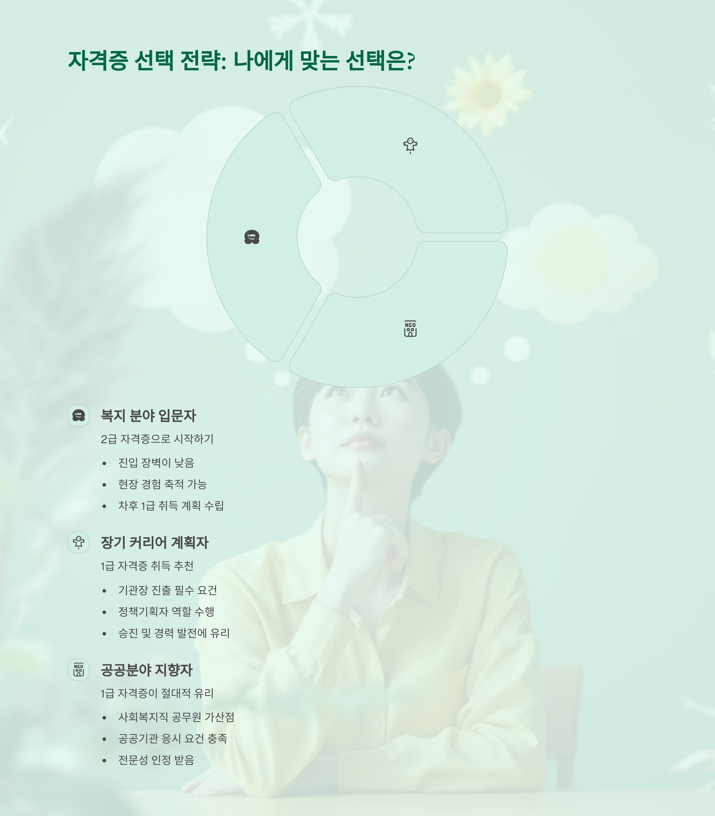 사회복지사 자격증은 ‘어떤 커리어를 꿈꾸느냐’에 따라 선택이 달라집니다.