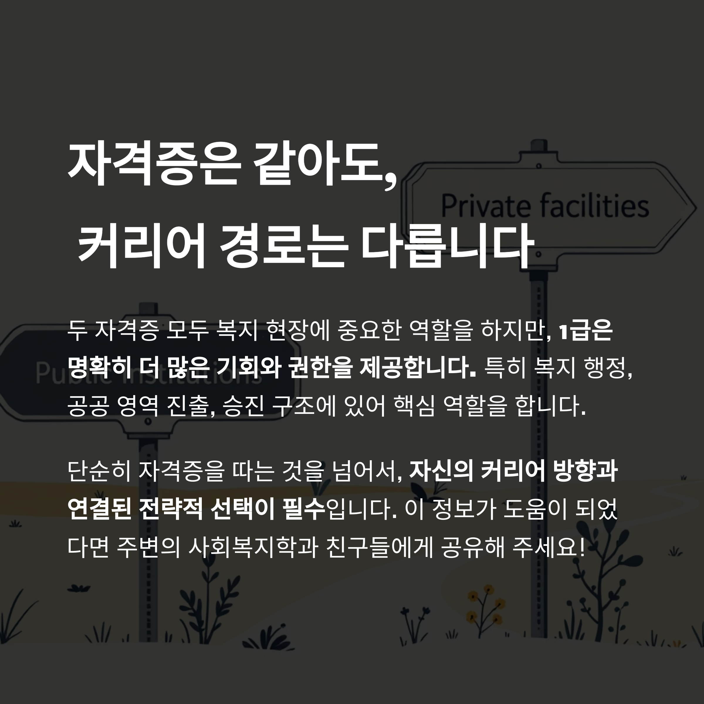 결론: 자격증은 같은 '사회복지사'지만, 길은 다르다