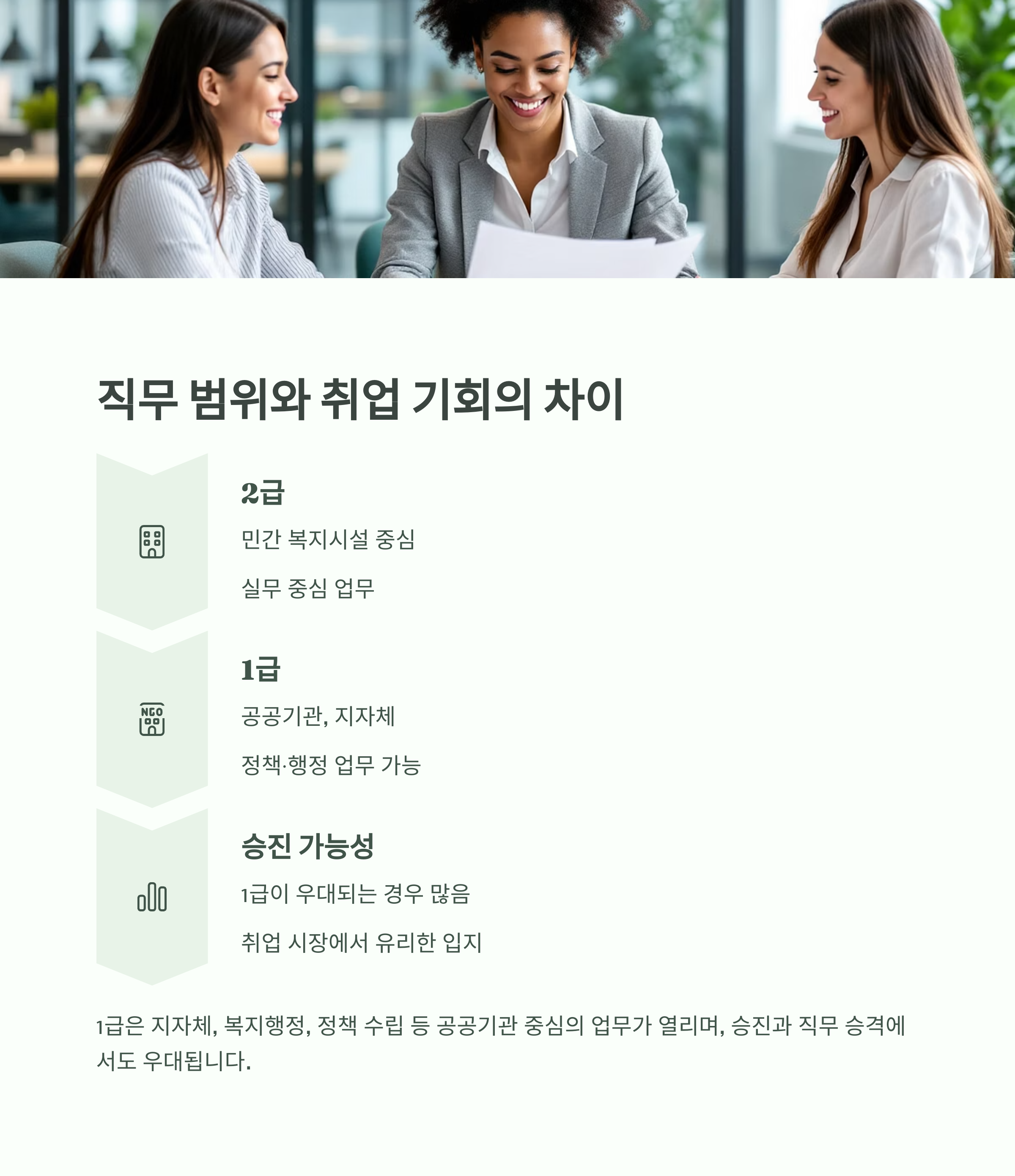 1급은 공공기관, 고위직, 복지계획 수립까지 가능